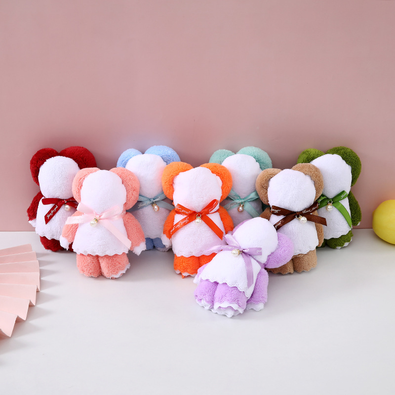 サンゴの毛の熊のタオルのお土産は、結婚式の誕生日のお返しのお店のイベントのかわいいアイデアのプレゼントです。