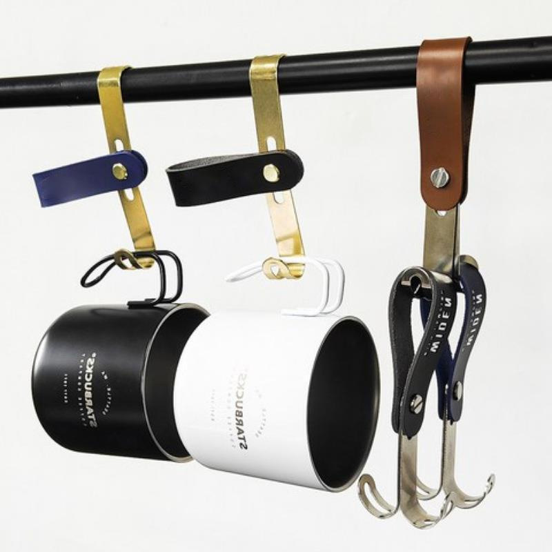 キッチンやバスルーム用の革製衣類収納フック、多機能レザーS字型メタルフック