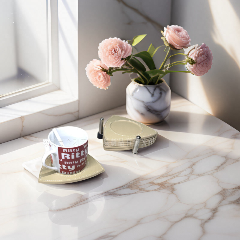 クロスボーダー新型革コースターオフィス断熱マットレトロ三角形革コースター創意コーヒーコースター
