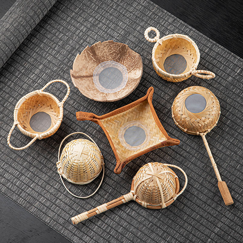 竹編み手作り竹根茶フィルターレトロ創意蓋碗茶コップ茶こし器編みフィルター茶こし器茶こし器