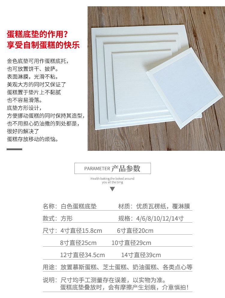 卸売りケーキ底托角型4/6/8インチ手提げケーキ托ケーキ紙マット厚め誕生日ケーキ箱底托
