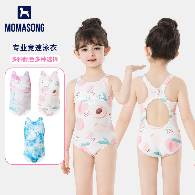 Momasong女児連体三角水着青少年学生専門訓練無胸パッドプリント水着