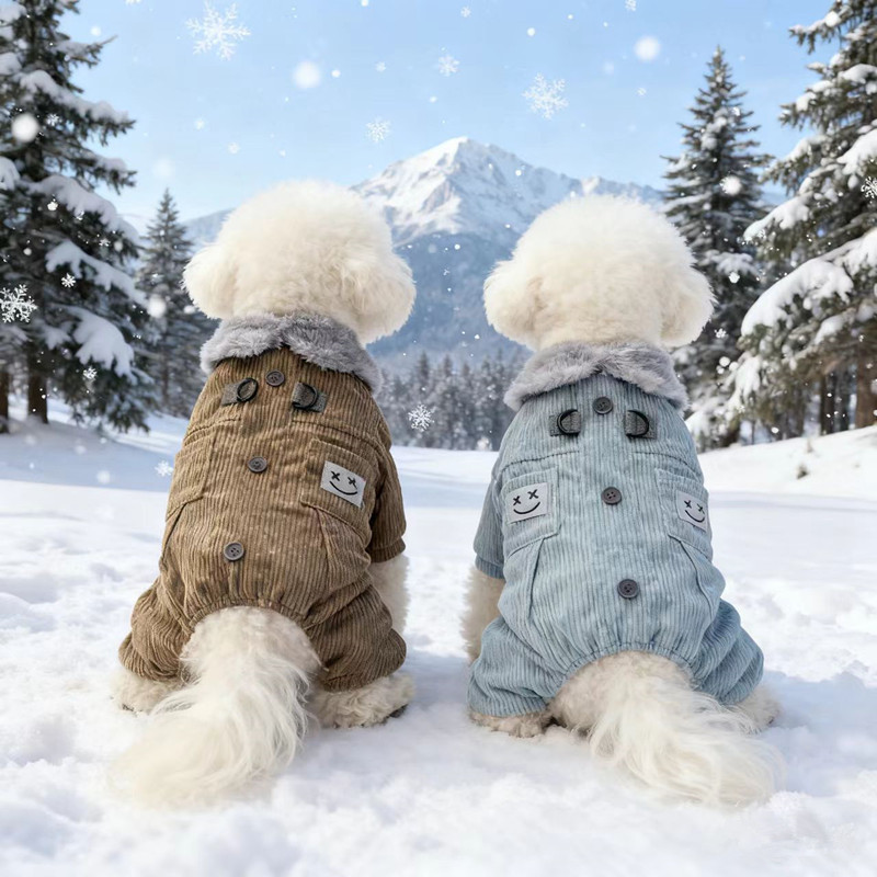 狗衣服秋冬装泰迪厚款方口袋灯芯绒四腿牵引棉衣宠物
