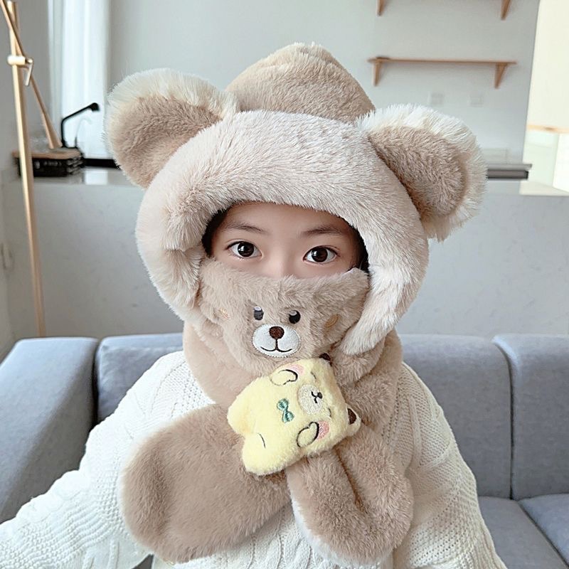 子供用耳保護帽子とベルベット秋冬新型ベアーかわいいミンク毛韓国版ファッション赤ちゃん帽子洋気