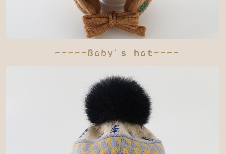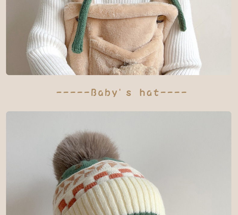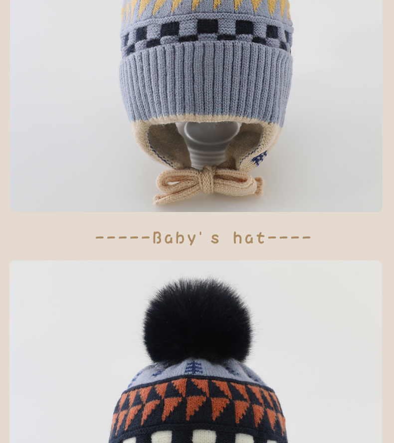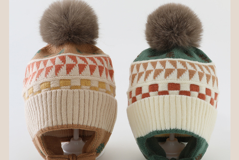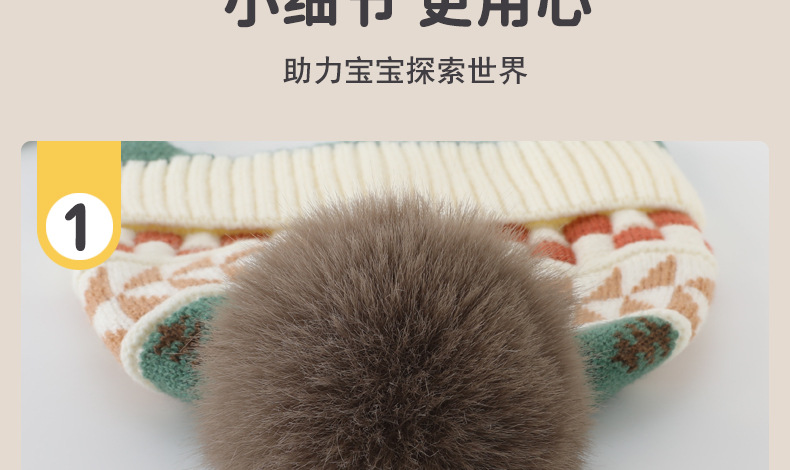 ベビー帽子冬かわいい漫画ダブルボールウール帽子男性女の子耳当て帽ニット帽子子供フード