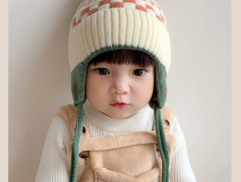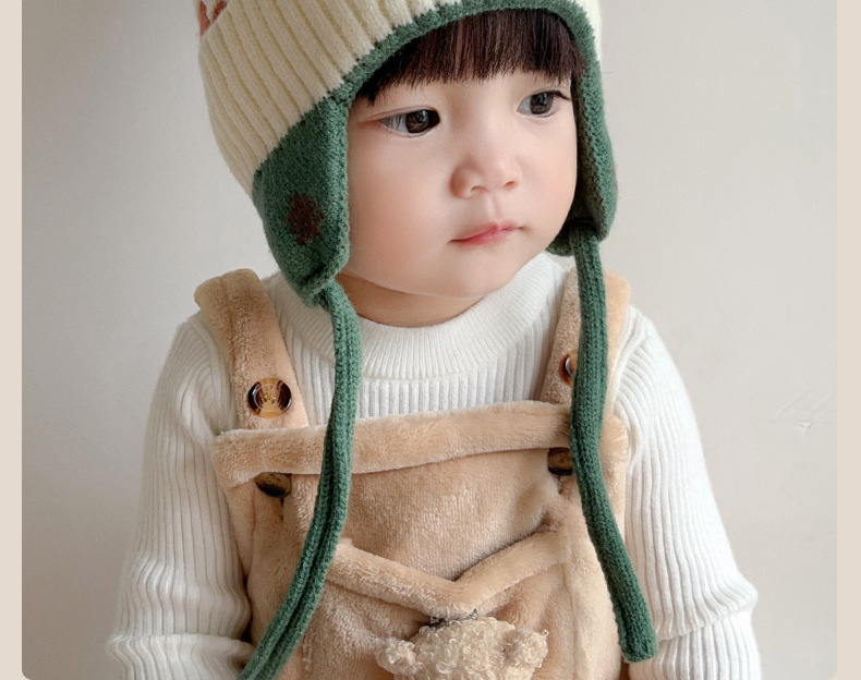 韓国系子供帽子秋冬保温耳保護帽子アルファベット洋気赤ちゃんファッションニット帽子毛糸帽子