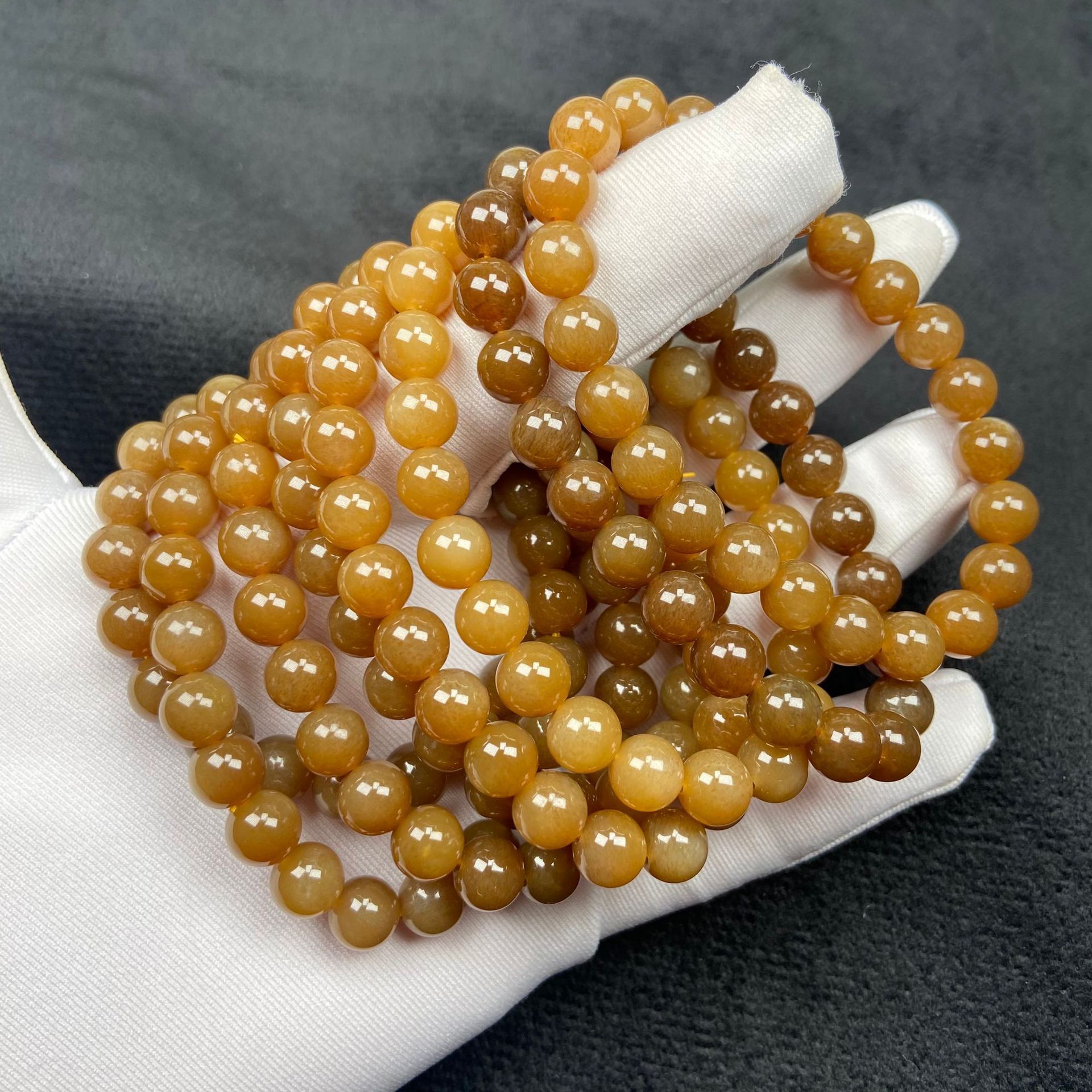 工厂批发天然和田玉黄口大手串12m时尚diy配珠和田玉黄口圆珠手链