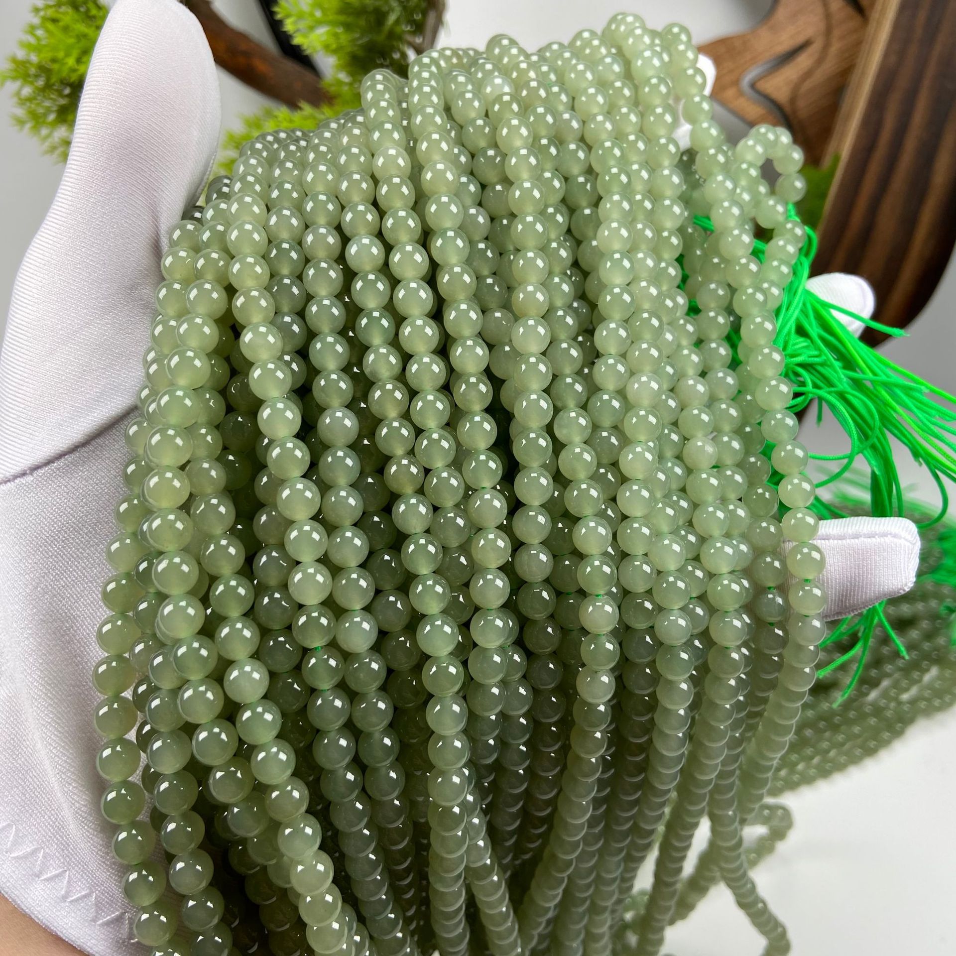 和田玉青海材料6mm晴水湖水緑仏珠108個のボールの毛のチェーン