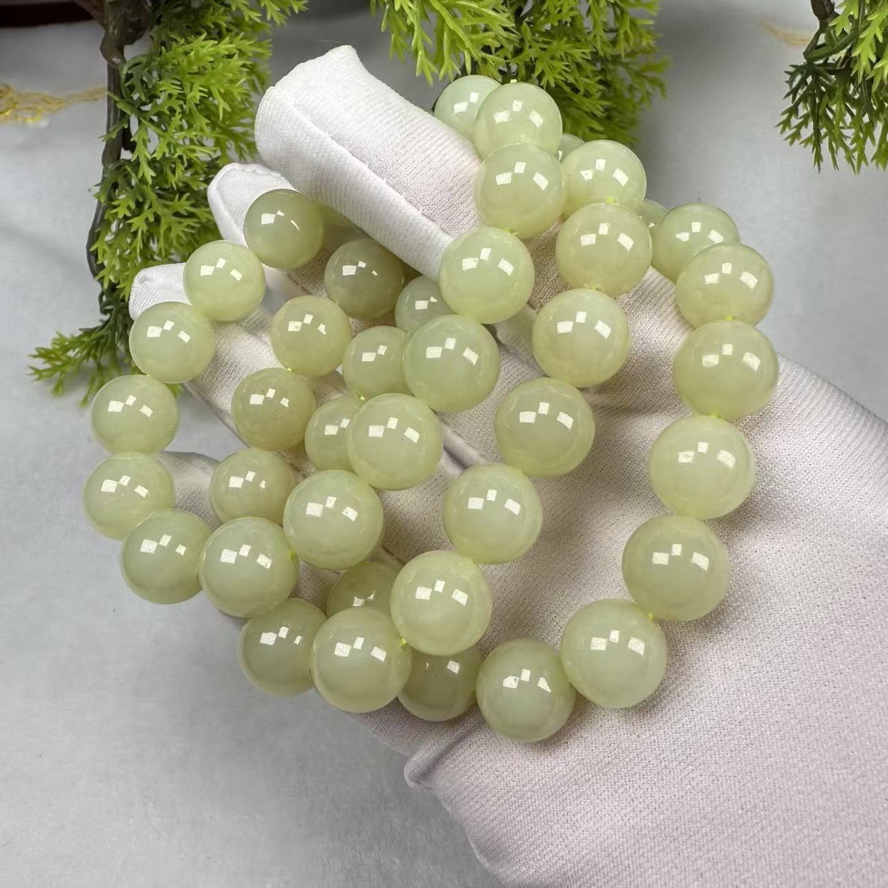 メーカー卸売り和田玉新疆とりあえず藍老型珠手串温潤繊細単輪和田玉手串