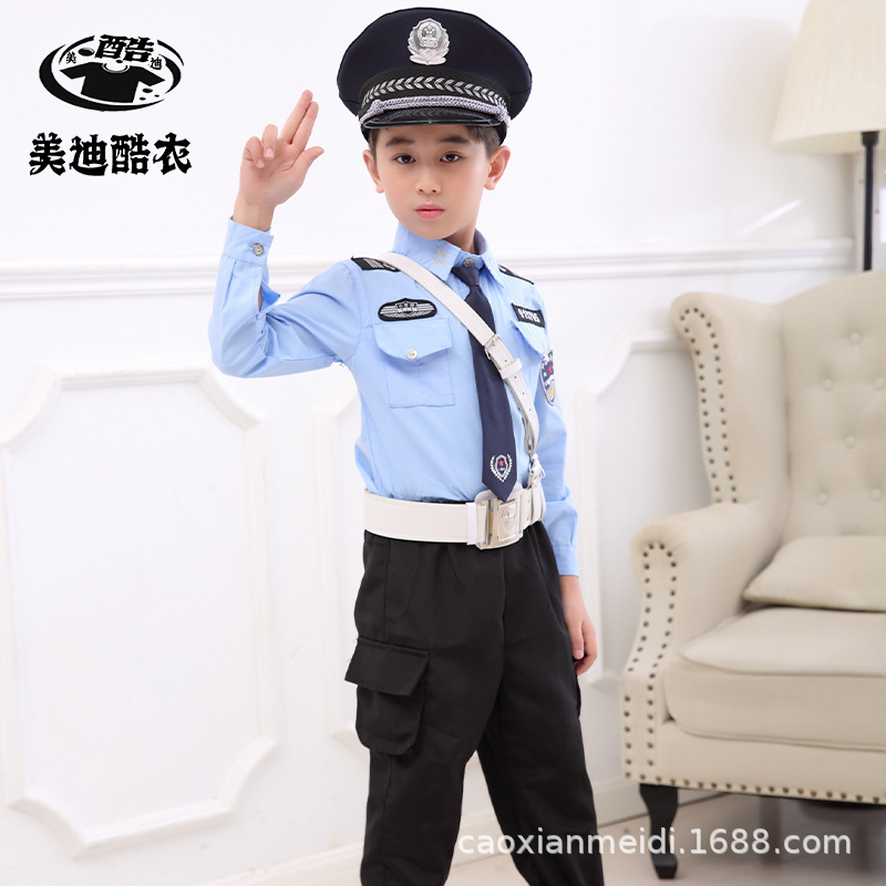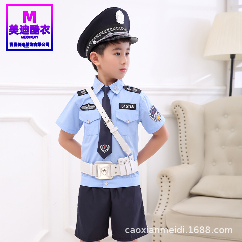 子供用警察服、男の子用警官服、警備員制服、男の子用夏服、警察制服セット、小さな交通警官の演出服