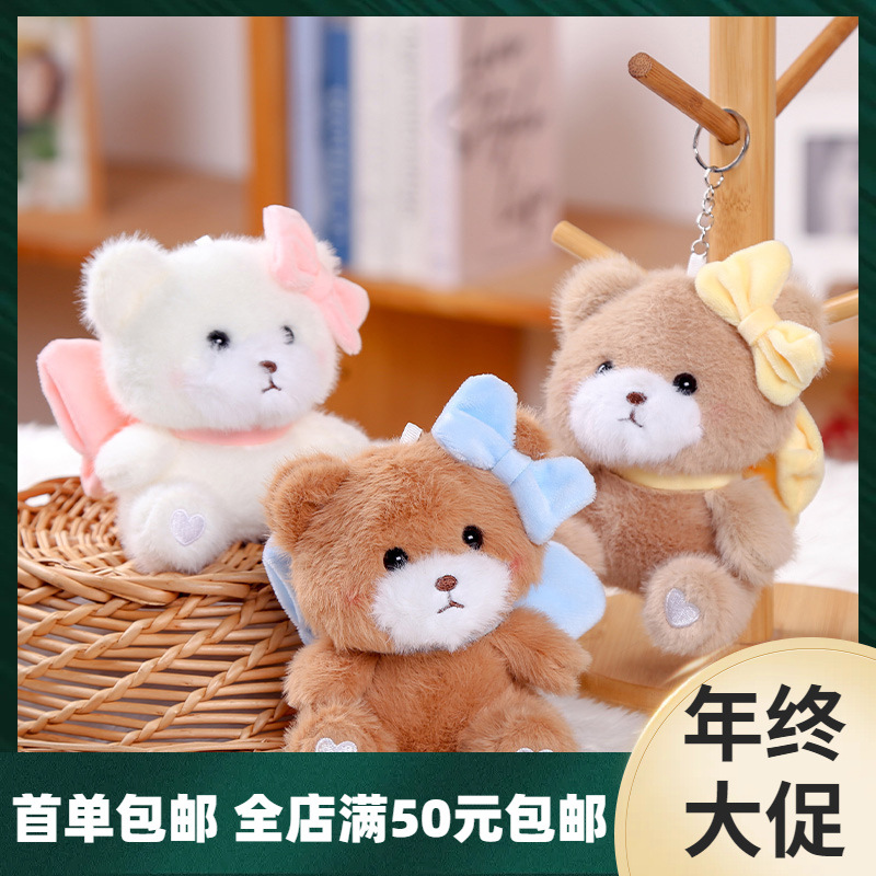 蝶結びの熊のぬいぐるみのぬいぐるみのカバンのペンダントが可愛いです。