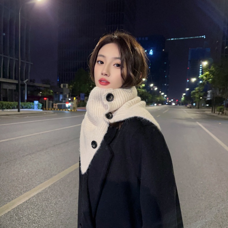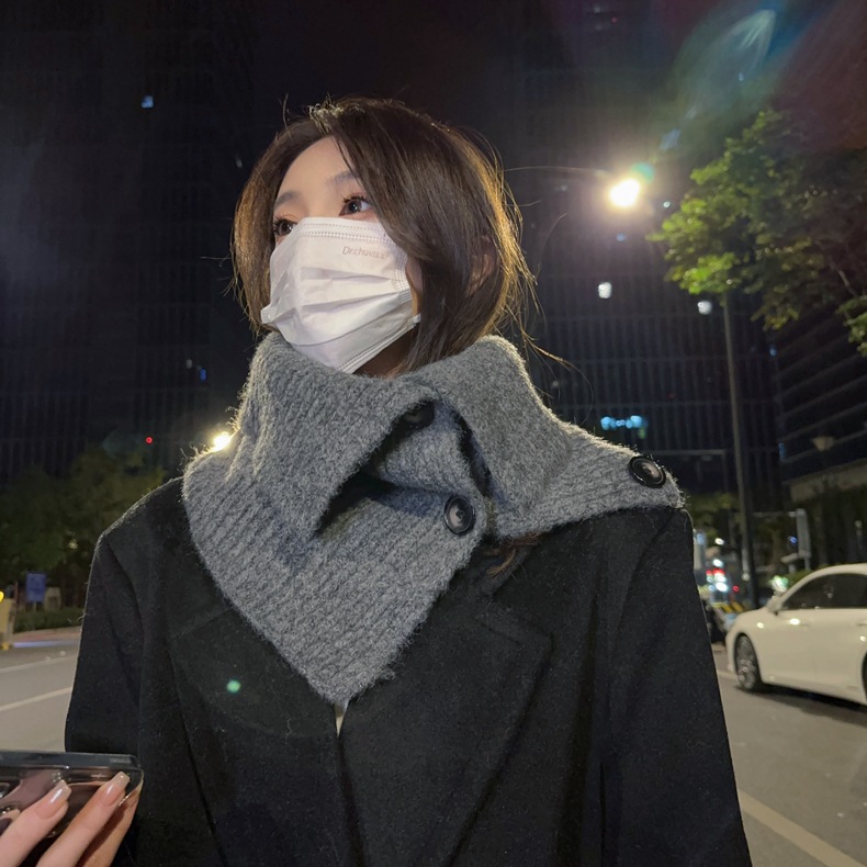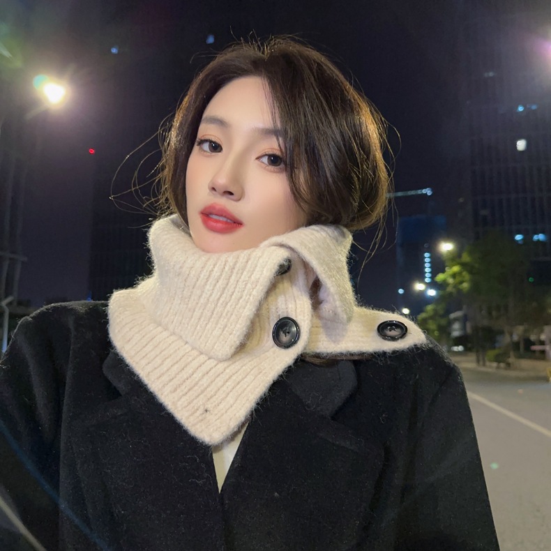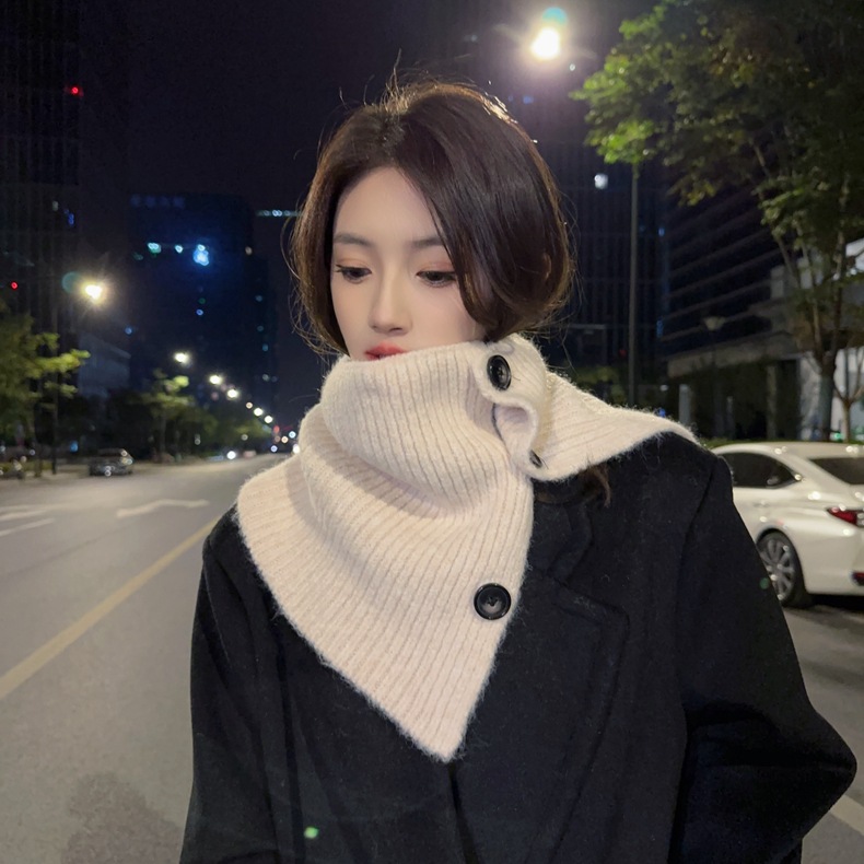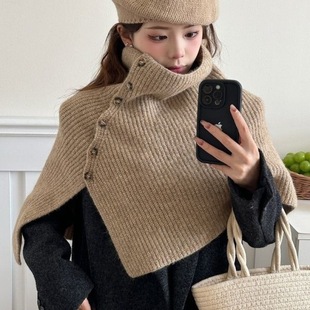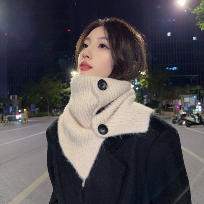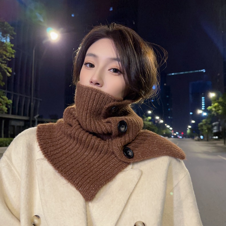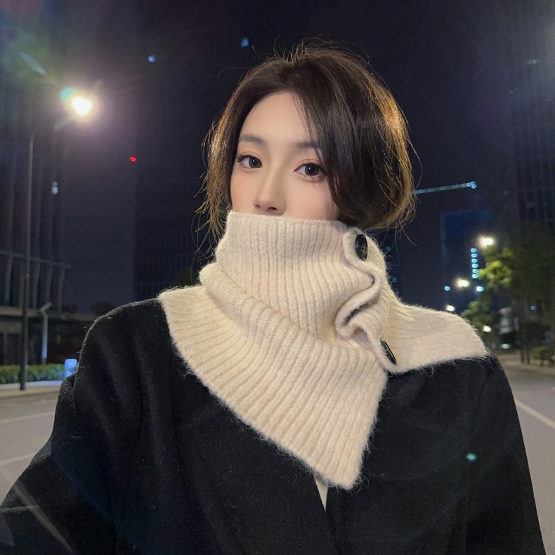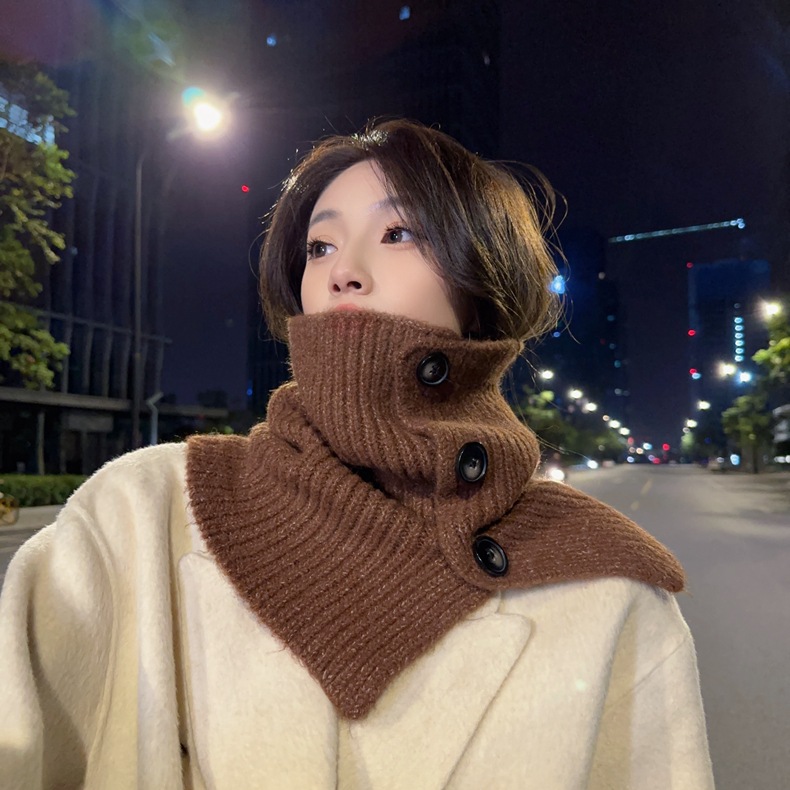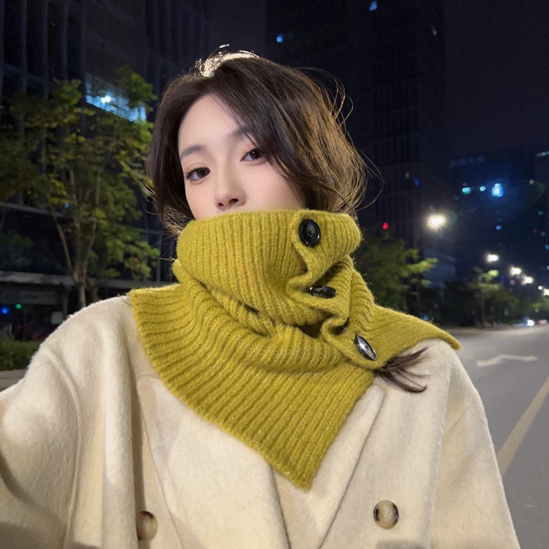冬用の厚みのある新しいファッショナブルなハイカラーネックウォーマー、韓国風の暖かい、多用途のボタン付きウールニットアウターウェア
