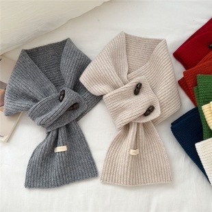 牛角扣纯色围巾新款懒人插口围巾女秋冬季韩系简约百搭针织围脖潮