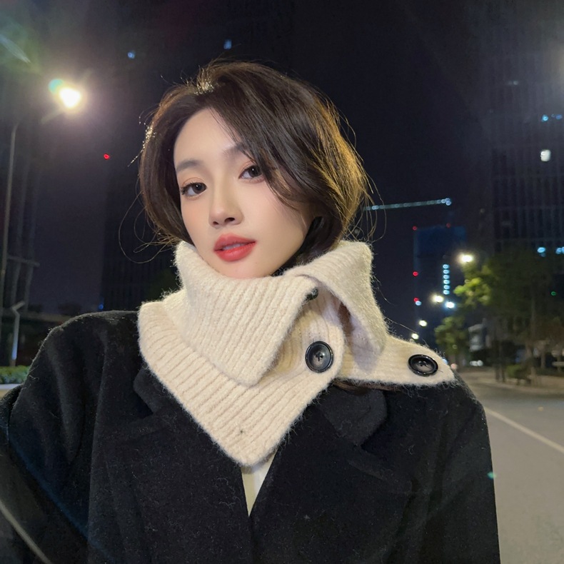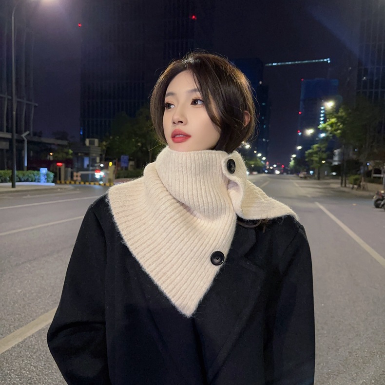 新型ニットマフラー秋冬保温首保護気質偽襟怠け者カバーマフラー男女通用三角タオル韓