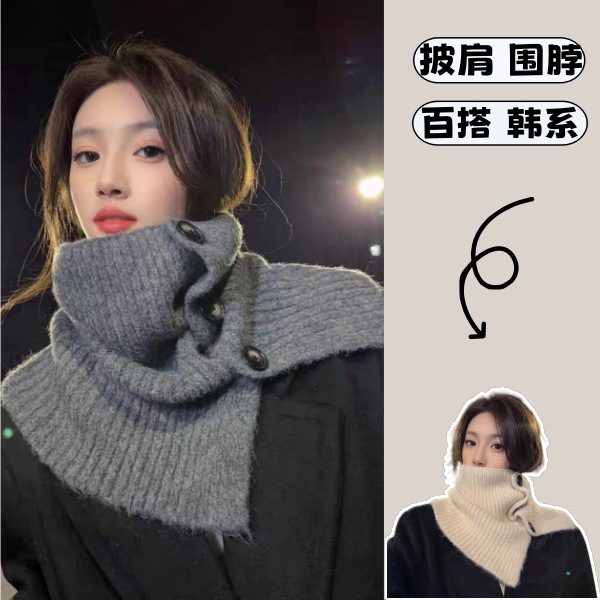 围脖女冬季2025新款百搭高级感纽扣保暖脖套护颈女生围巾SHBL披肩