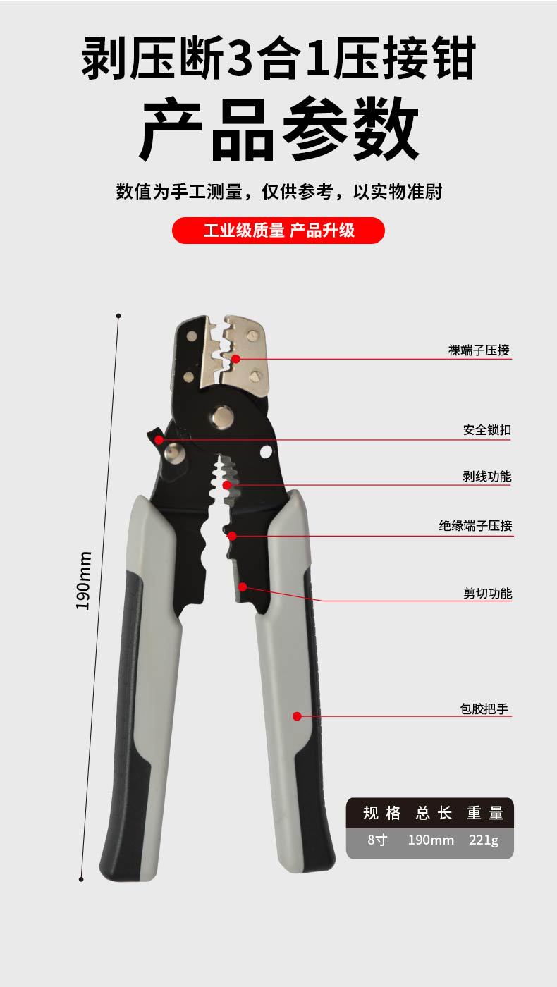 プロ級電気技師専用圧着せん断剥離線三合一多機能剥離鉗子
