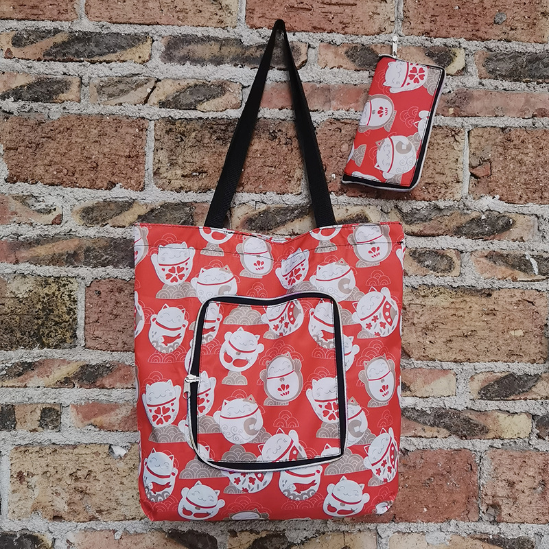 現物財布式折り畳み手提げ袋携帯スーパーレジ袋折り畳み可能旅行収納バッグ印刷ロゴ