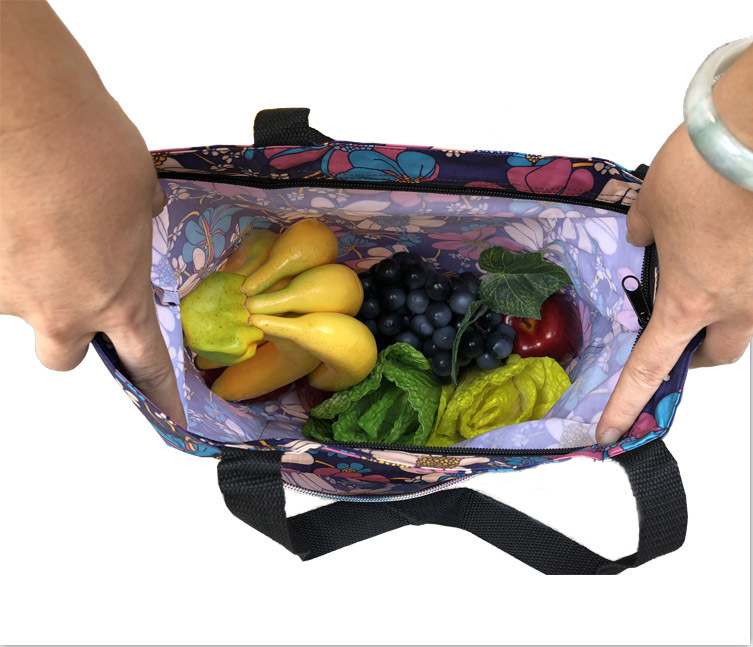 リサイクル再利用可能な防水ショッピングバッグ折りたたみジッパーバッグオックスフォード布バッグ食料品ショッピングバッグ印刷可能 Lo