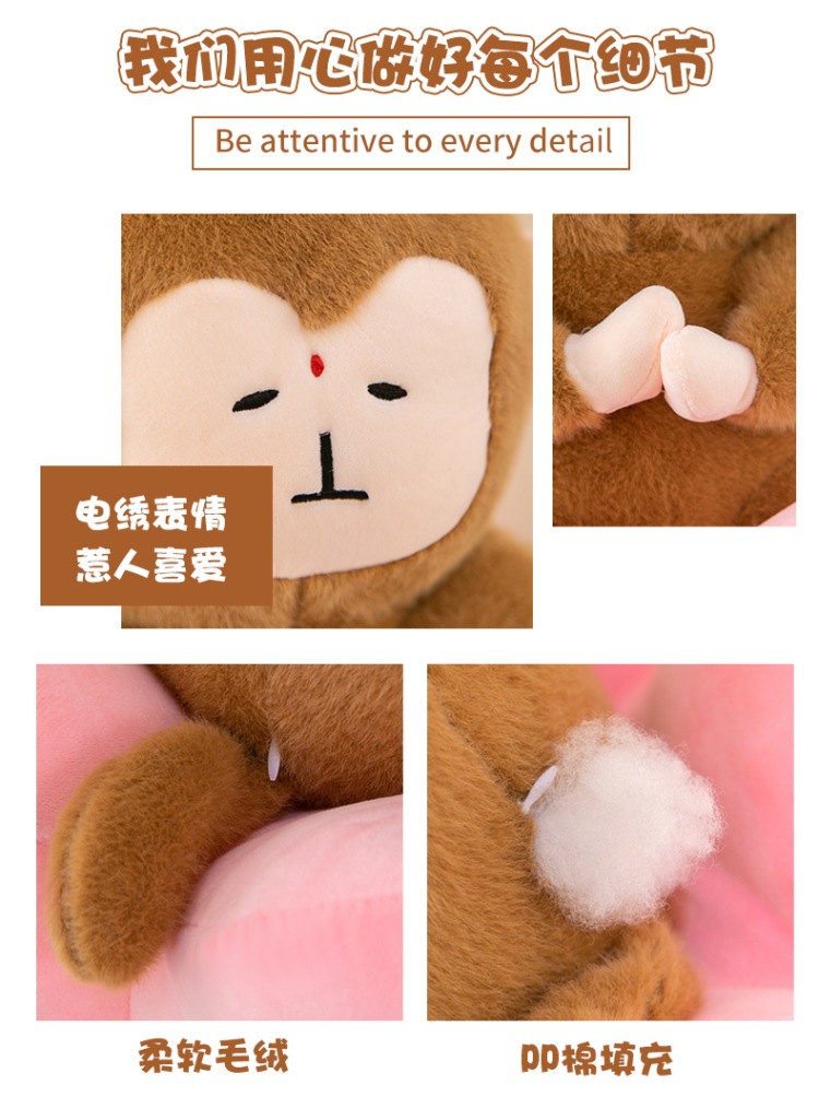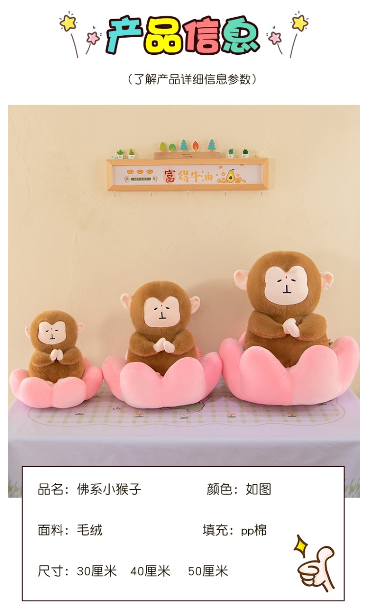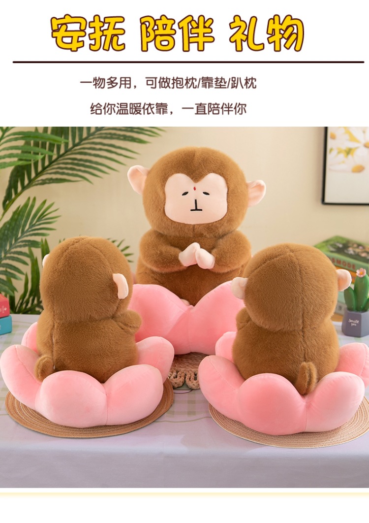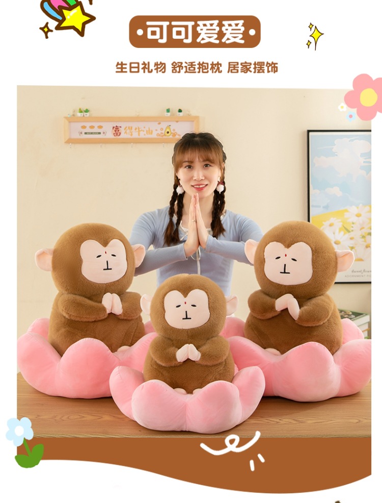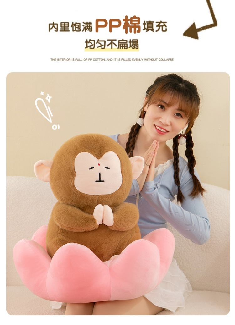 外国貿易の新型の仏陀は猿のぬいぐるみのぬいぐるみのベッドの上で人形を飾って機械をつかんで人形の卸売りを両替します。