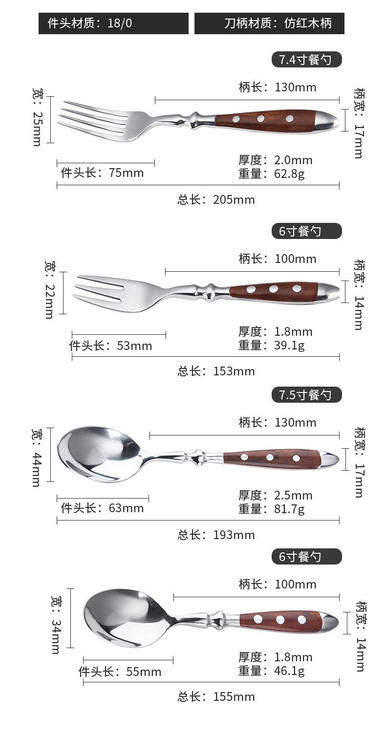 カラー RG11-2-2-6インチスプーン,RG11-1-2-7.5インチスプーン,RR17-2-2-6 3インチフォーク,RR17-1-2-8 4インチフォーク,RN126-1-1-4インチバターナイフ