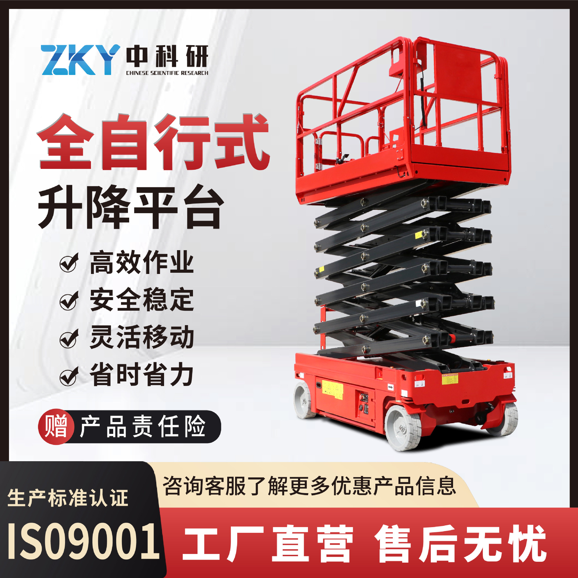 電動油圧駆動・高所作業神器・全自走式昇降プラットフォーム・小型高効率昇降機