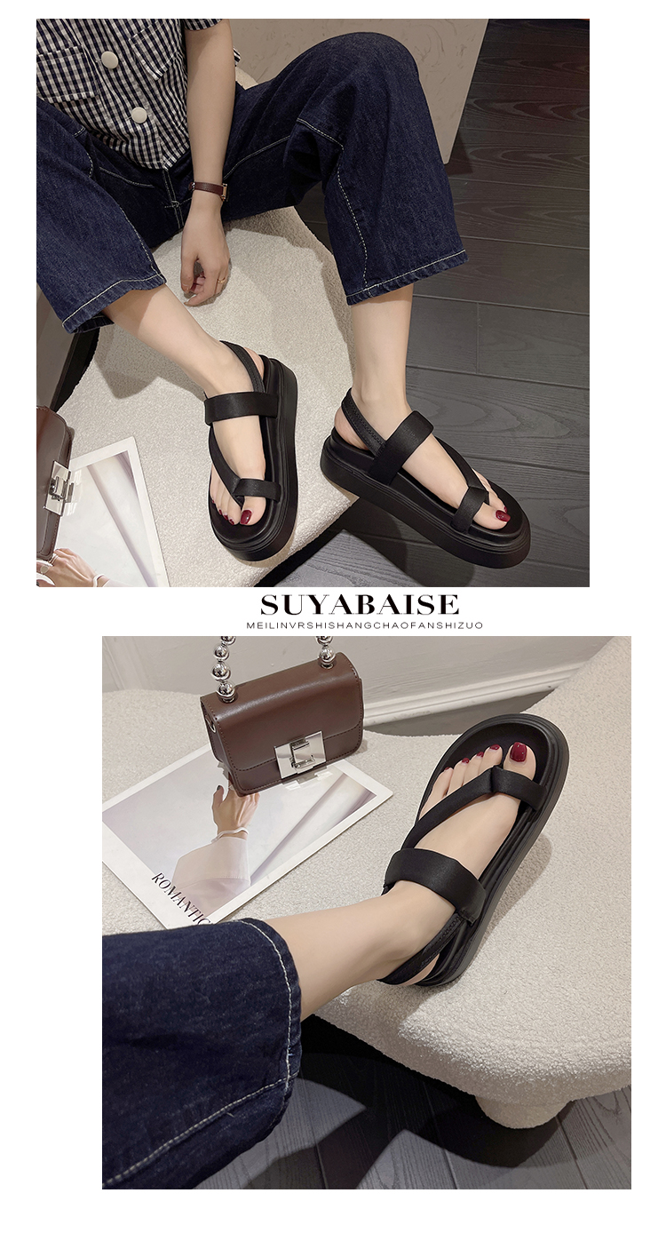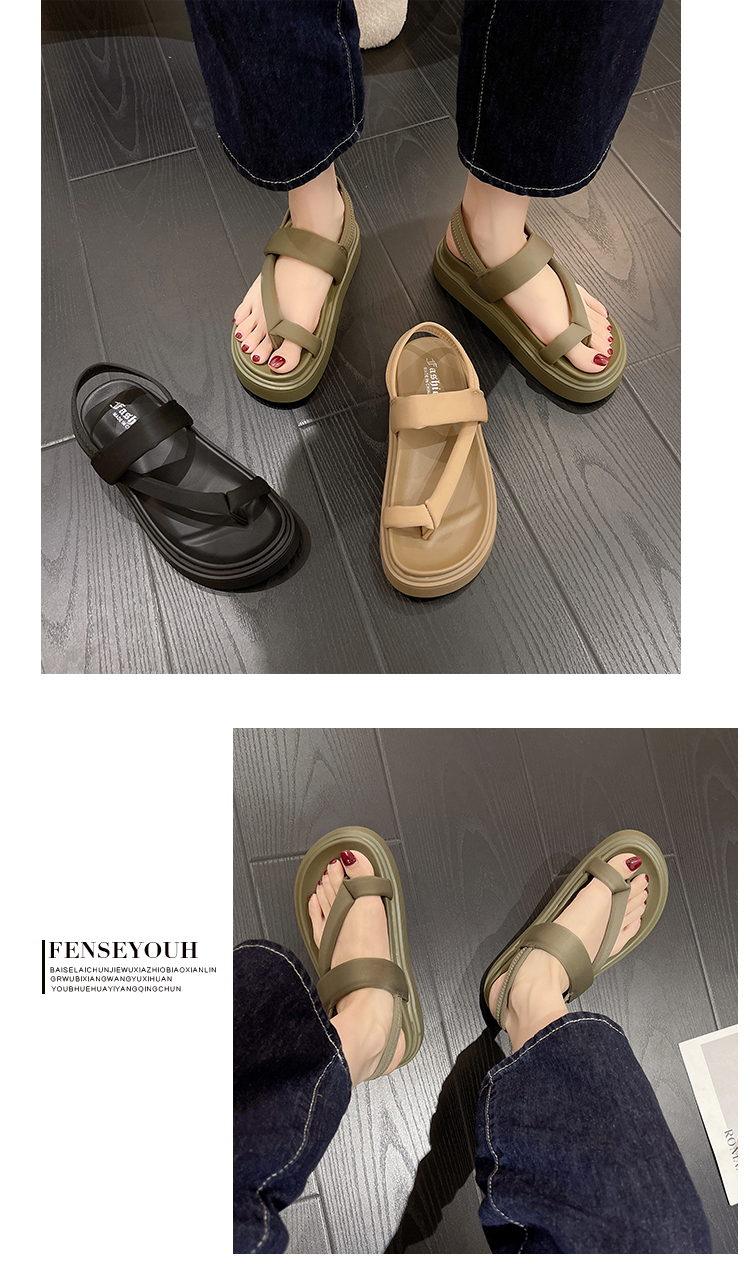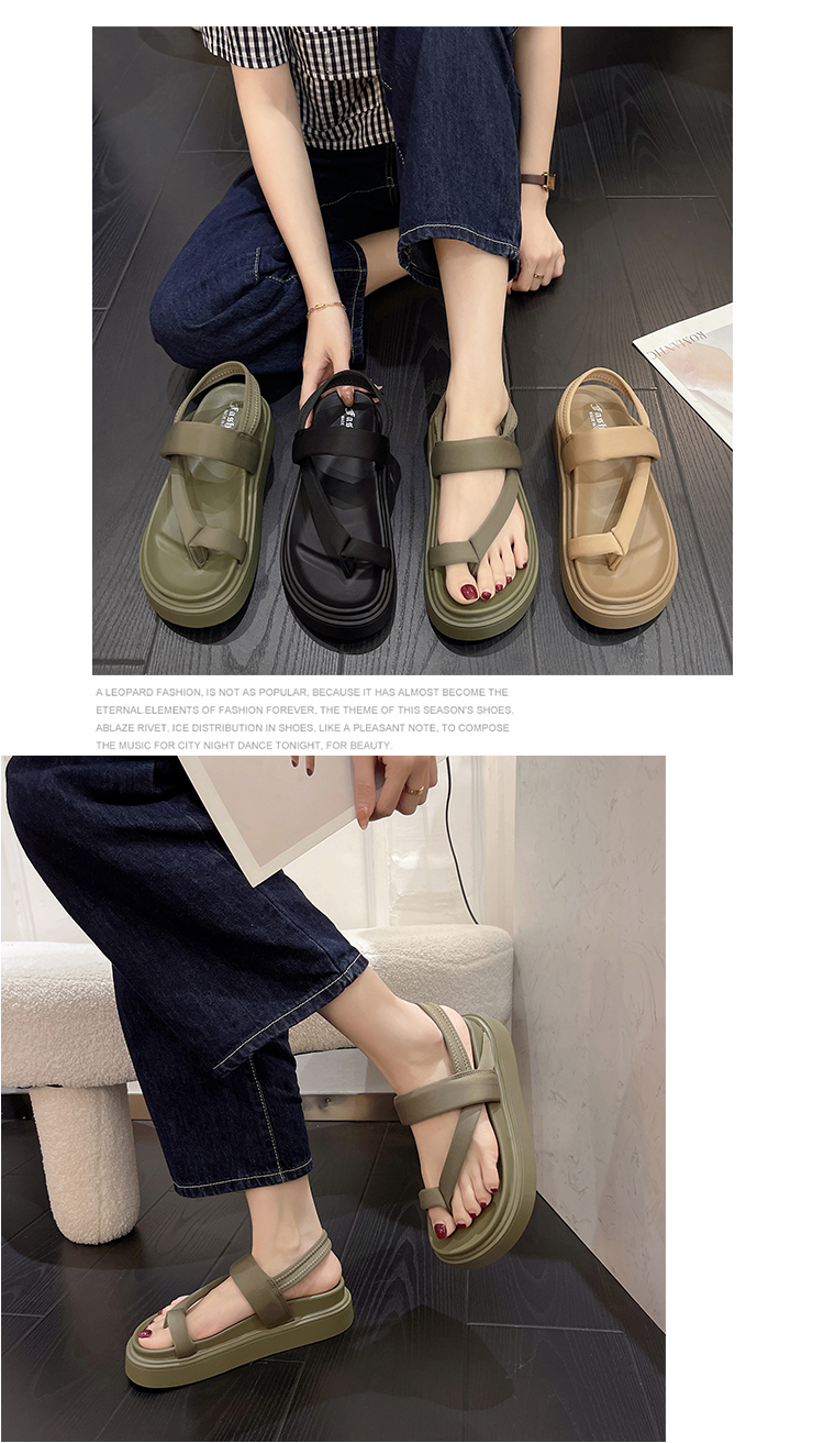 ローマのサンダルの女性の2024年の夏の新型の足の指の厚い底のカジュアルなネットの赤いファッションの百合の小さい背のビーチの靴