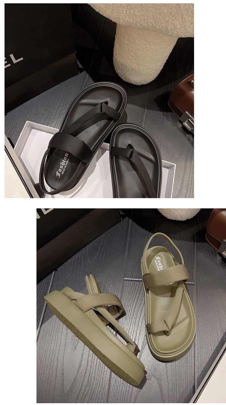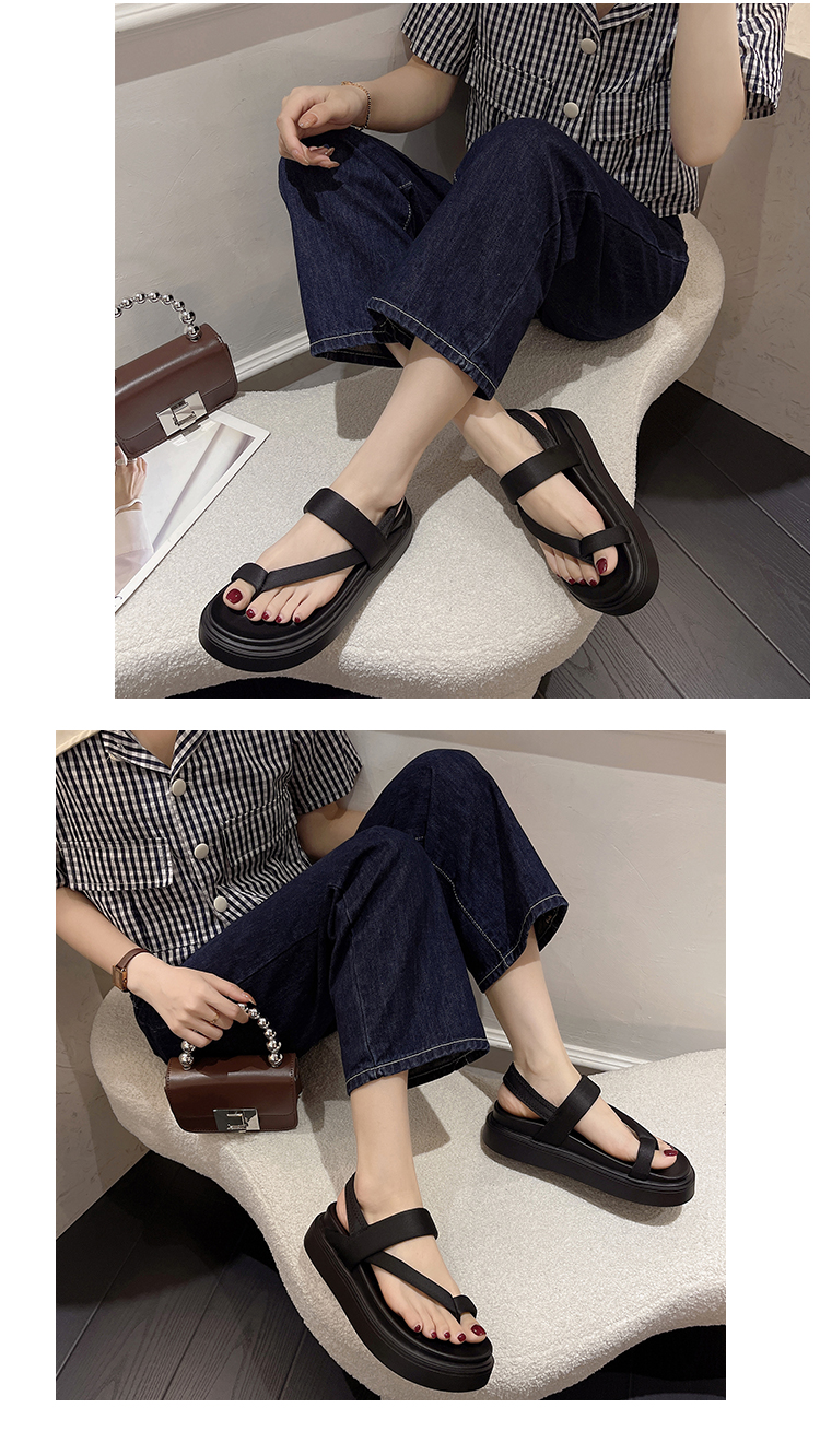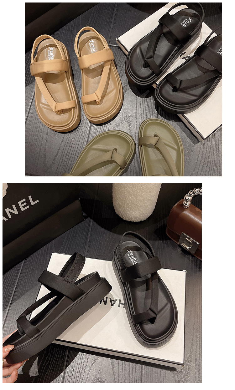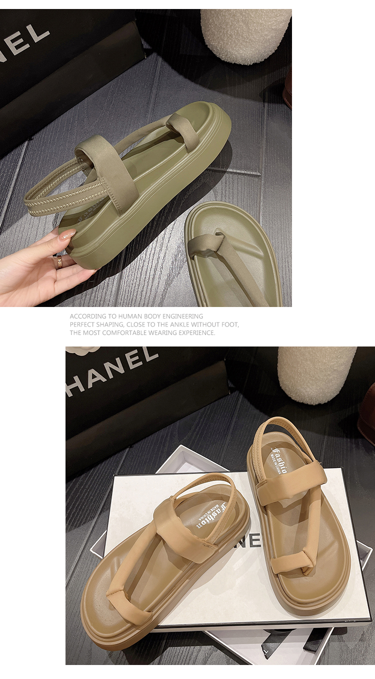 ローマのサンダルの女性の2024年の夏の新型の足の指の厚い底のカジュアルなネットの赤いファッションの百合の小さい背のビーチの靴