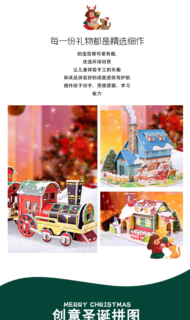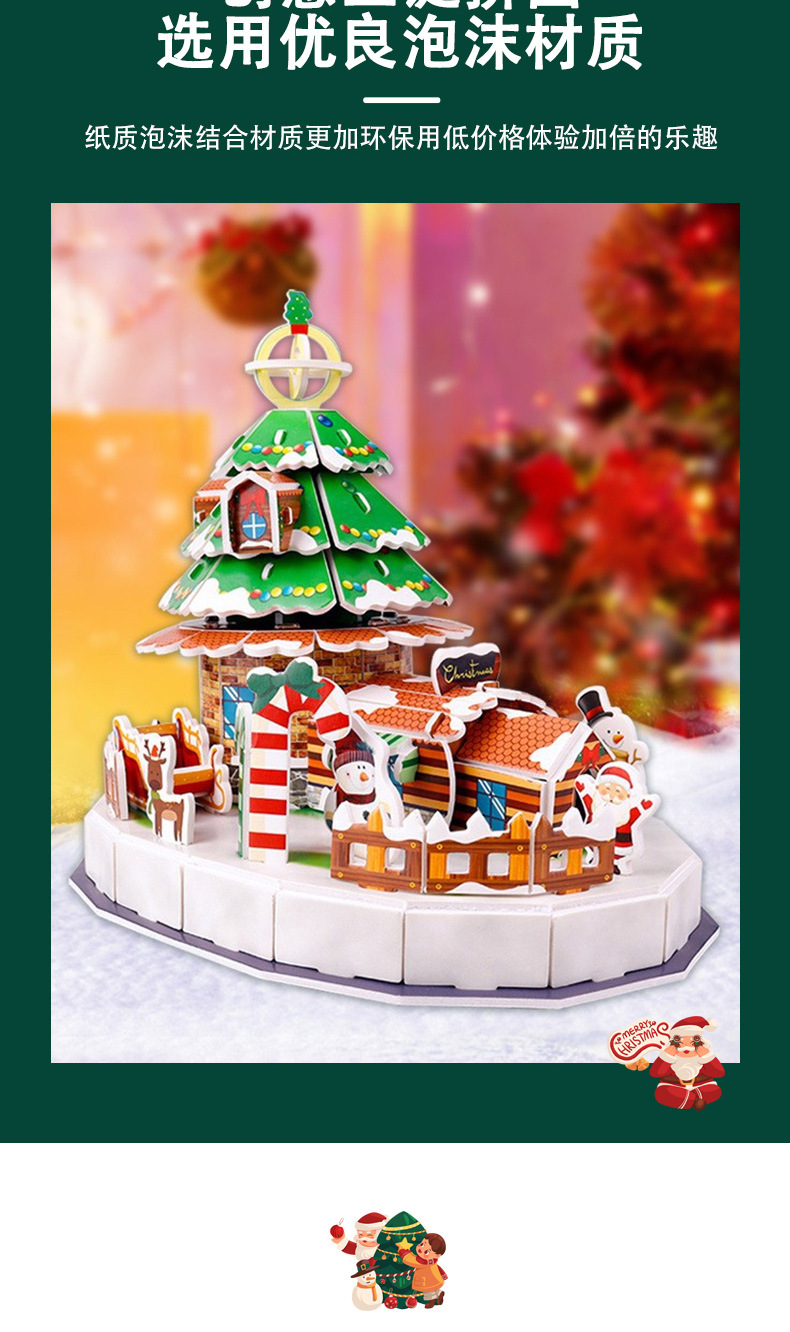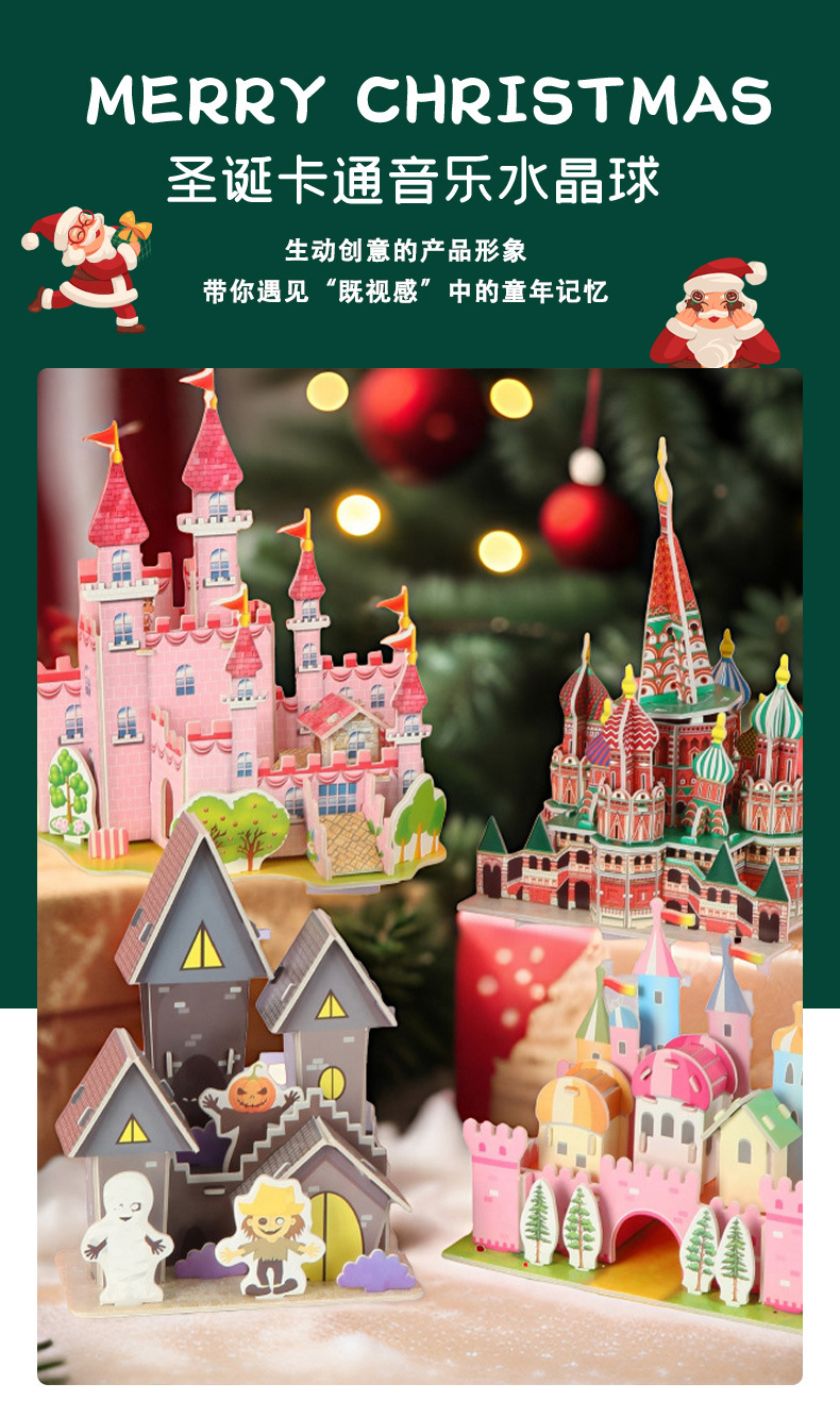 クリスマスの紙の手作りの立体のパズルの子供のdiyの益智の城はおもちゃの小学生の平面を詰めて版をつづり合わせます。