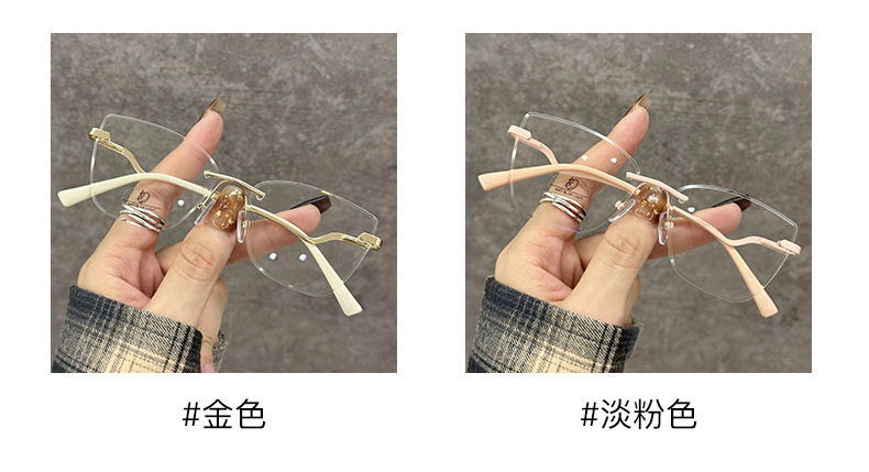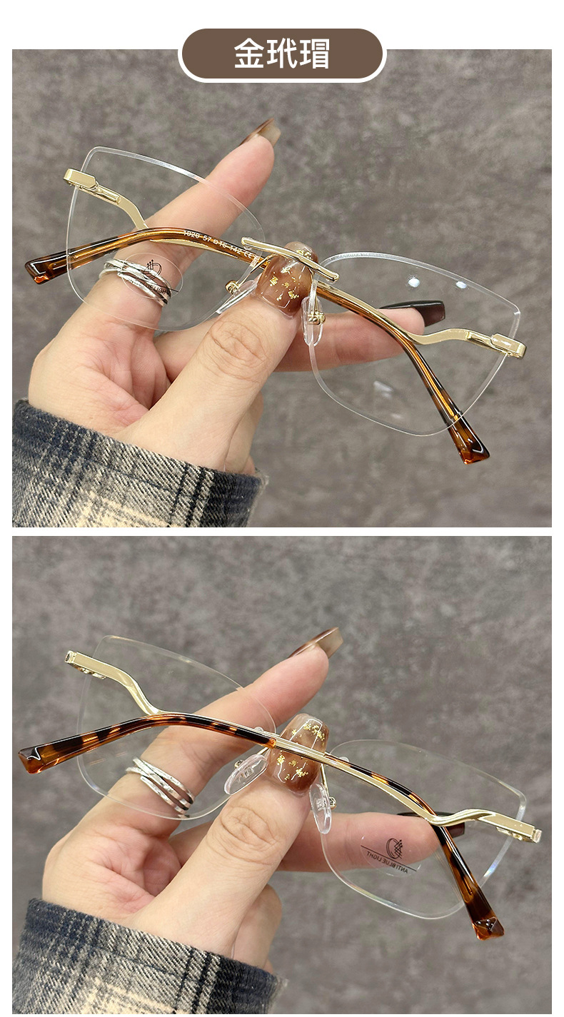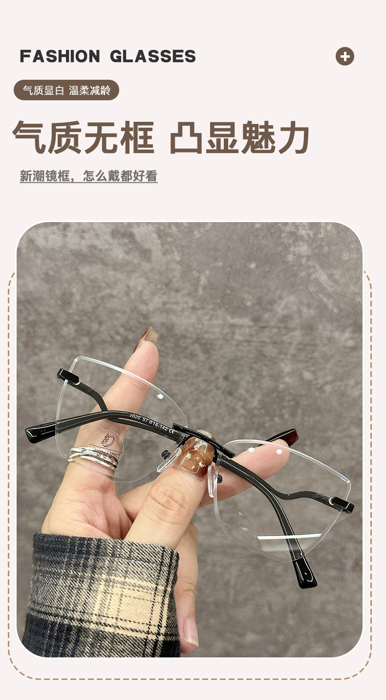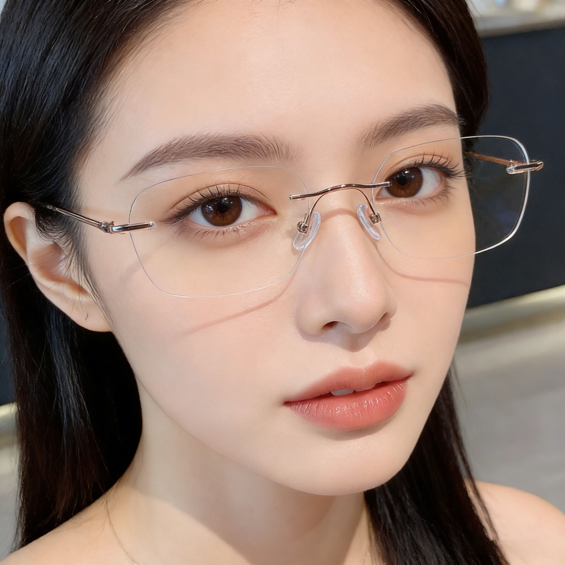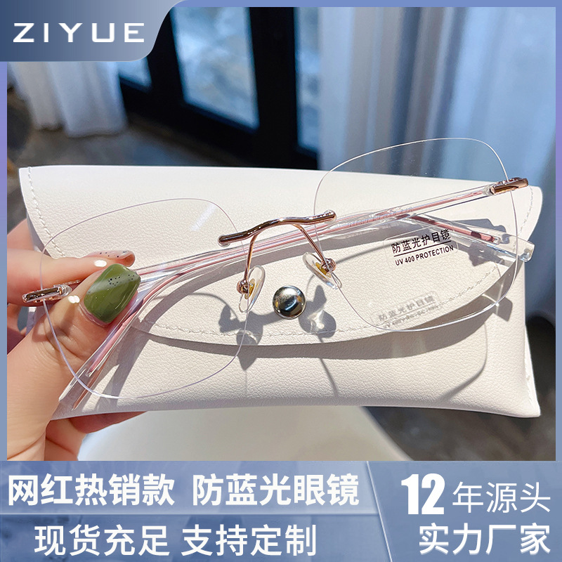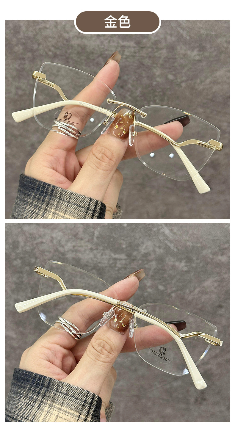 超軽量フレームレス近視眼鏡女性高級感フレーム金属眼鏡フレーム付き度数防止ブルーレイ平光鏡