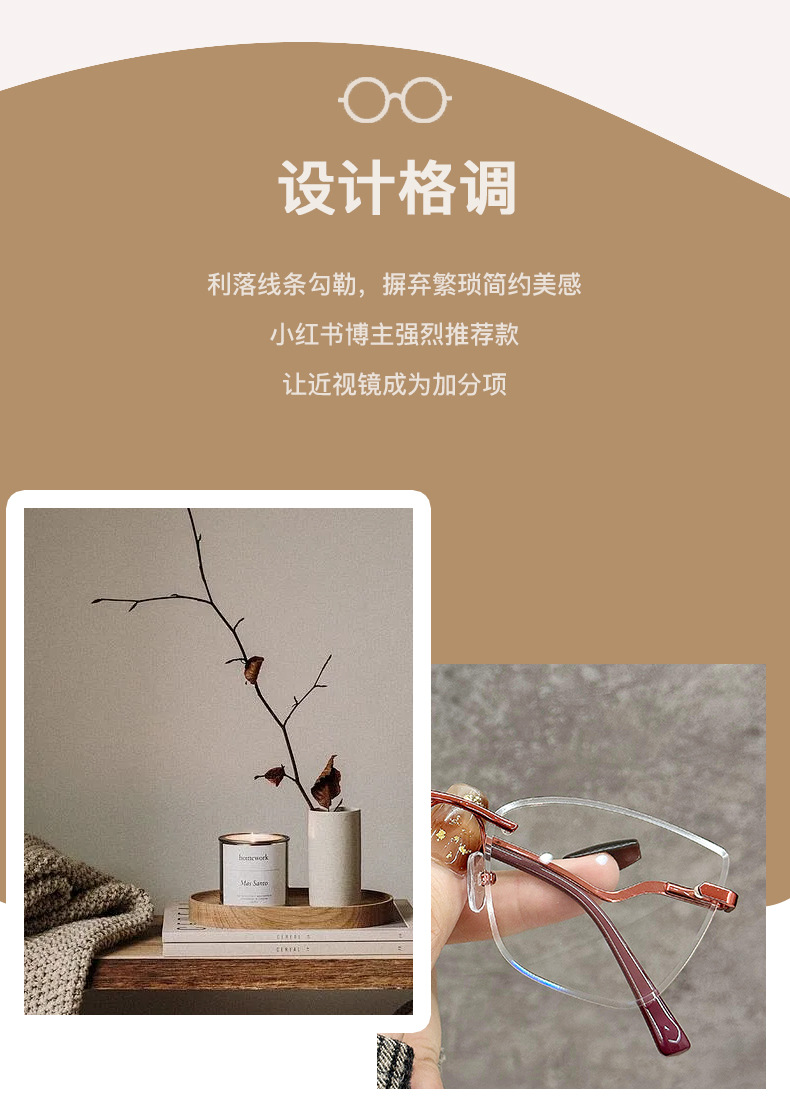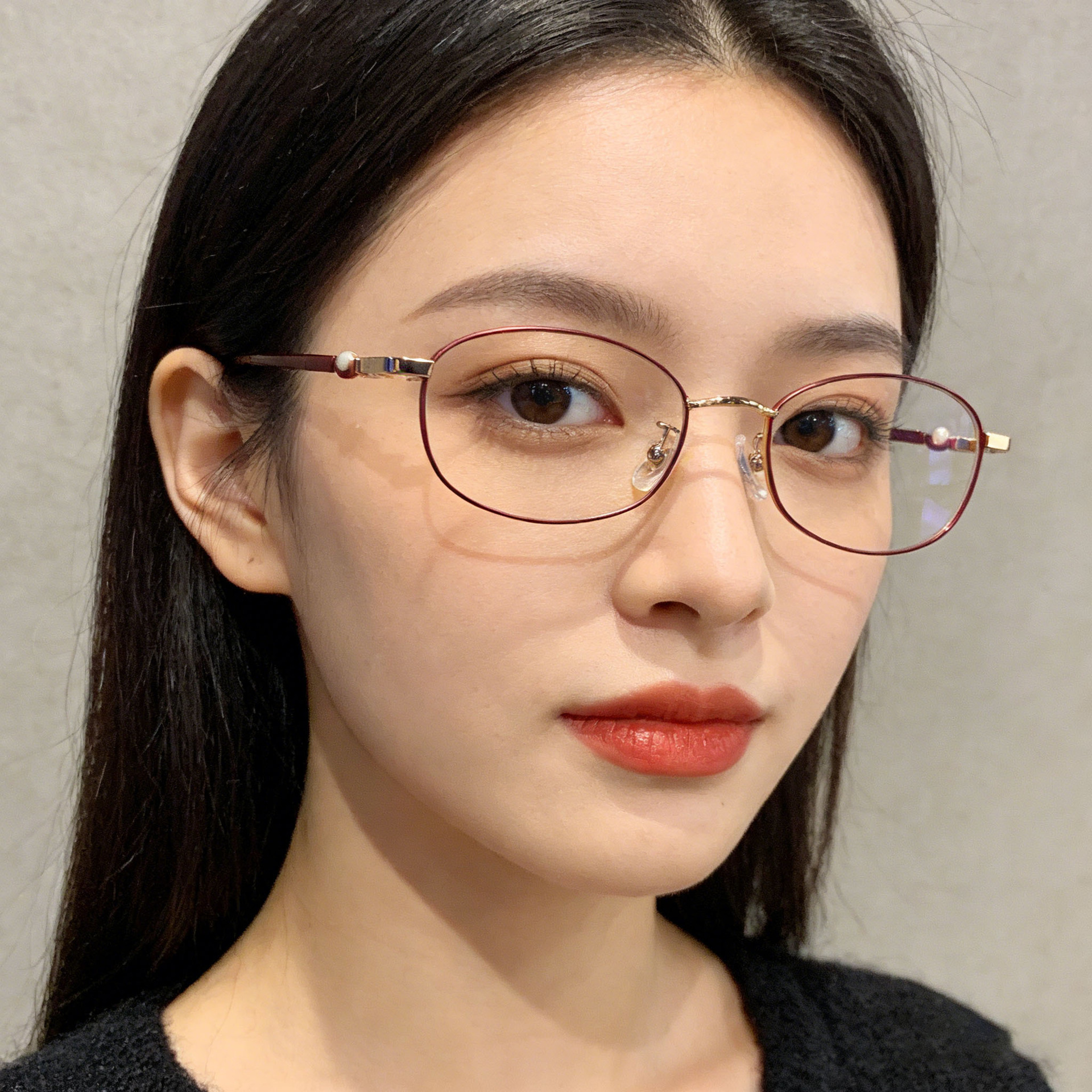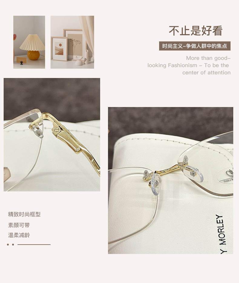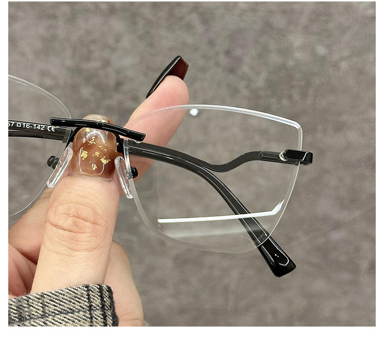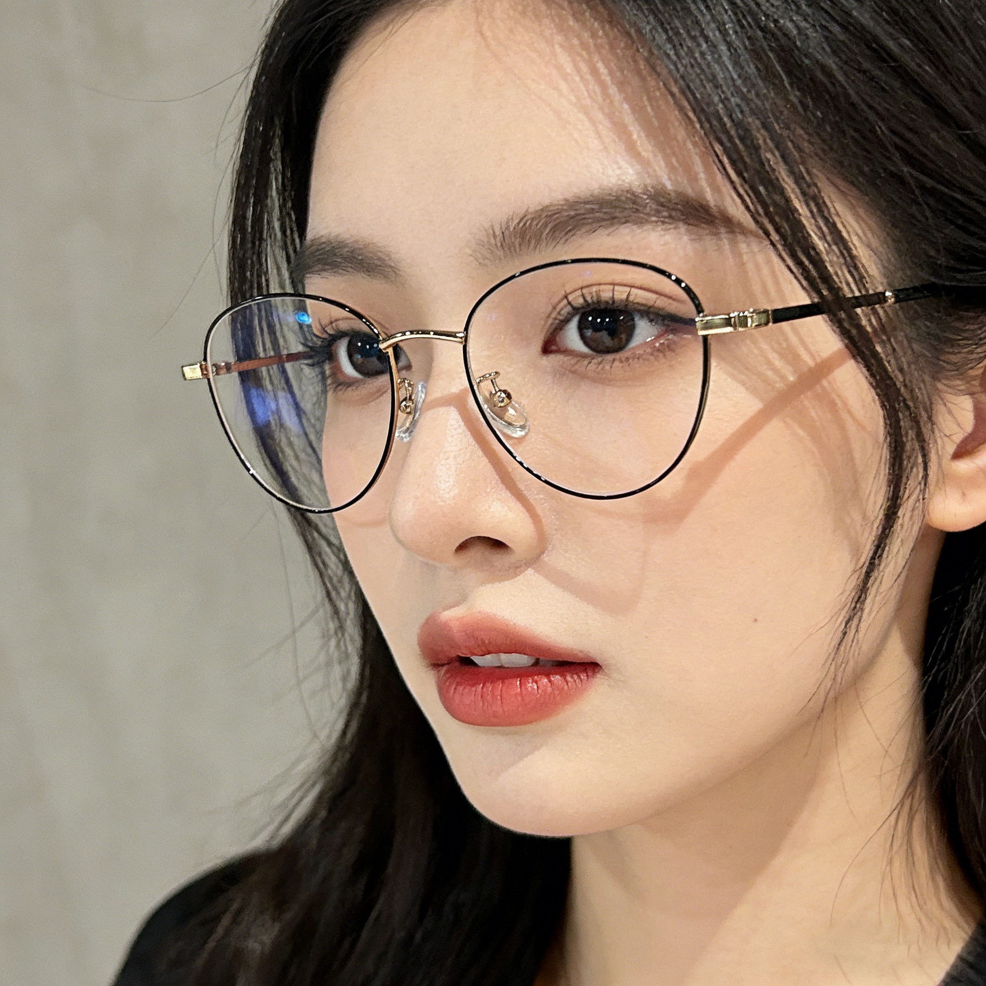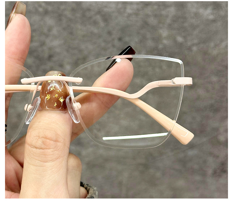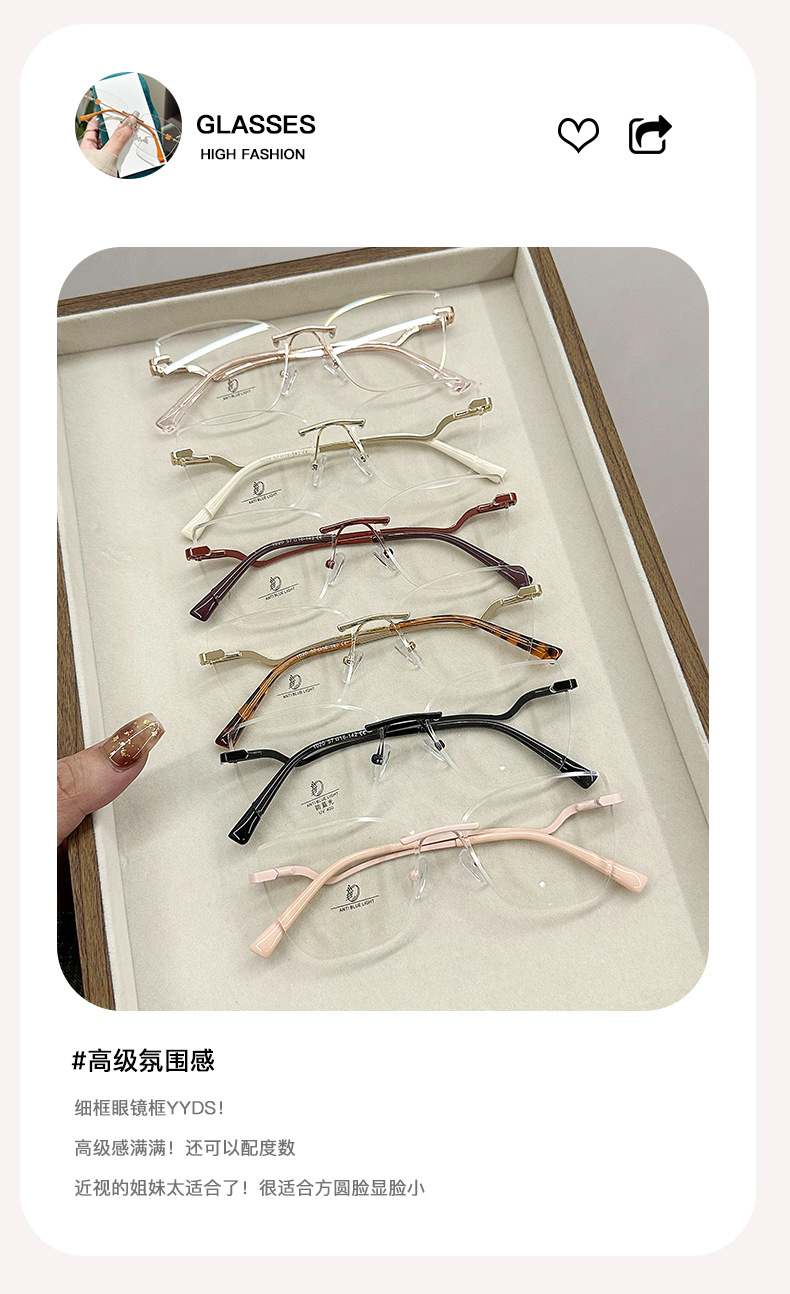 超軽量フレームレス近視眼鏡女性高級感フレーム金属眼鏡フレーム付き度数防止ブルーレイ平光鏡