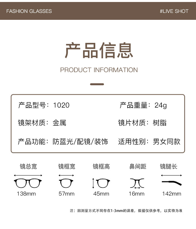 新製品の茶色のメガネフレームのブルーレイ防止のレトロな小さいフレームのメガネフレームの潮流は近視の度数の素顔の平光鏡を配合することができます。