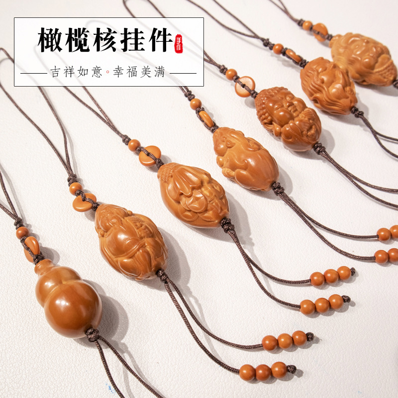 オリーブ核単種彫刻財神観音単個ペンダントキーホルダー