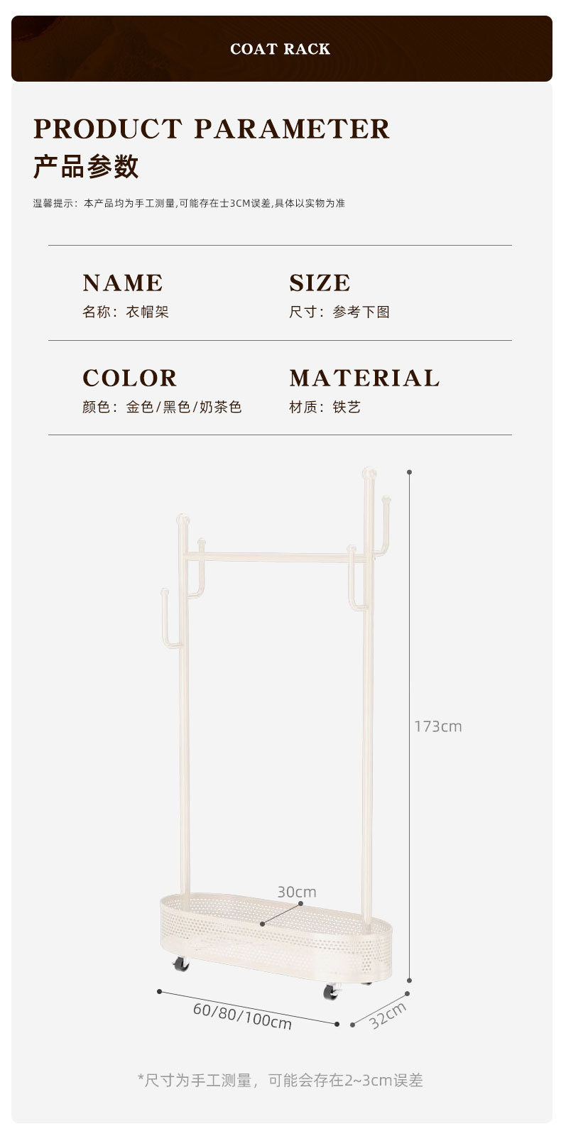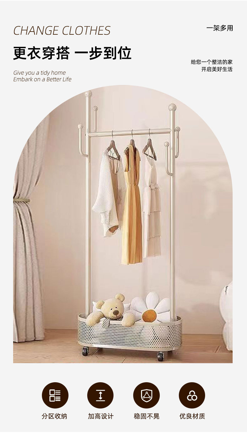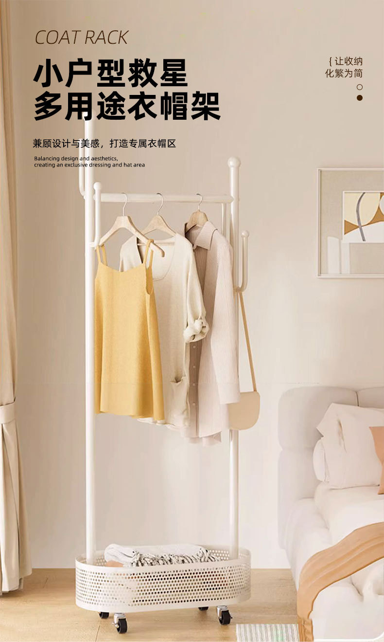 衣帽架落地家用卧室便捷式置物架可移动晾衣架挂衣服架子简易衣架