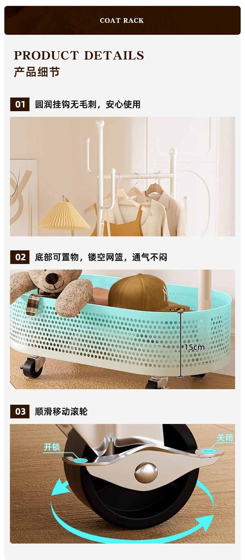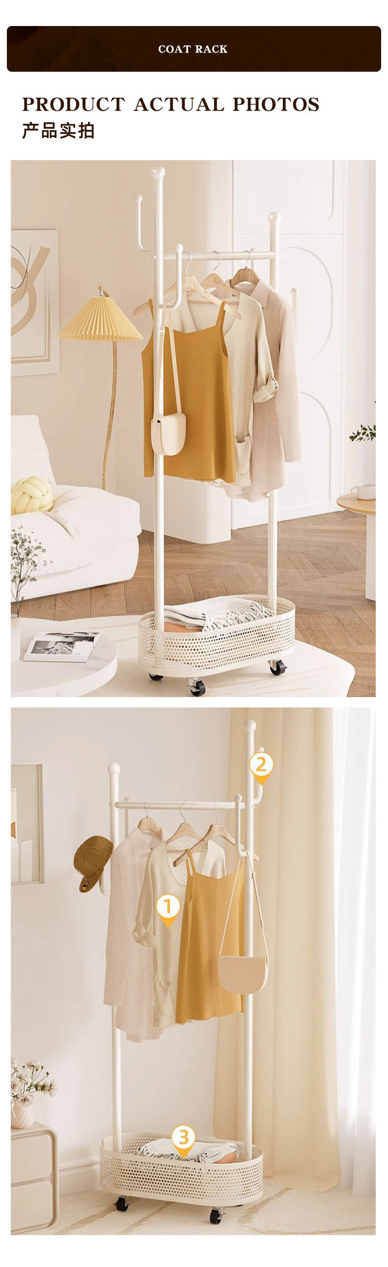 円形サボテンハンガー大容量バスケット付き物置棚ファッション家庭用ハンガー小型移動式ハンガー