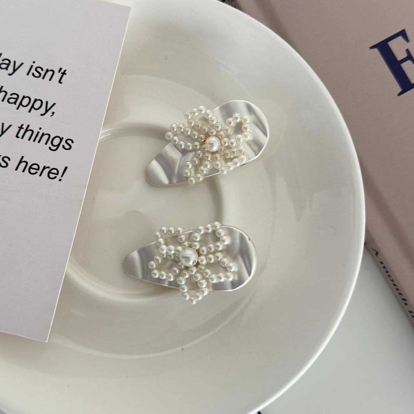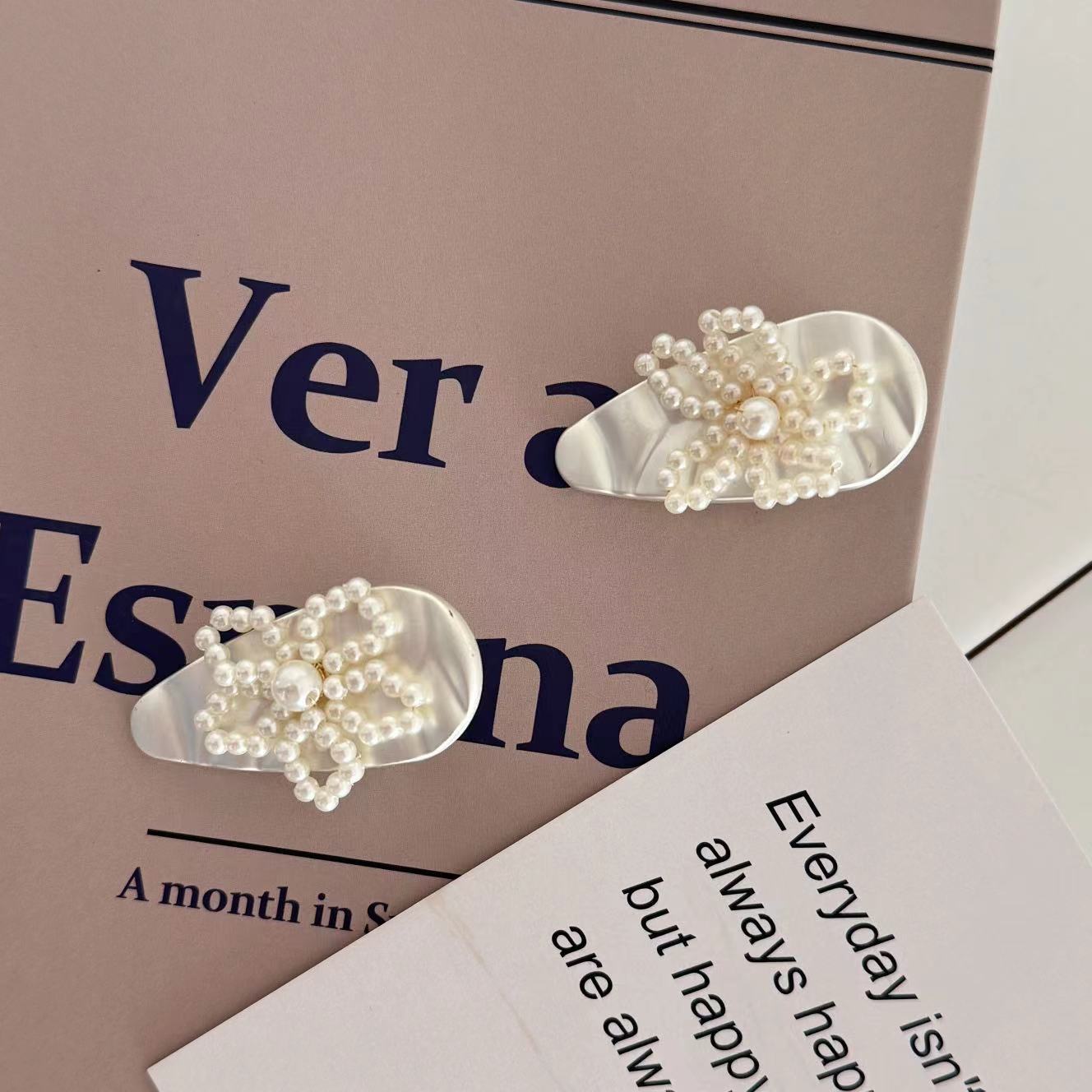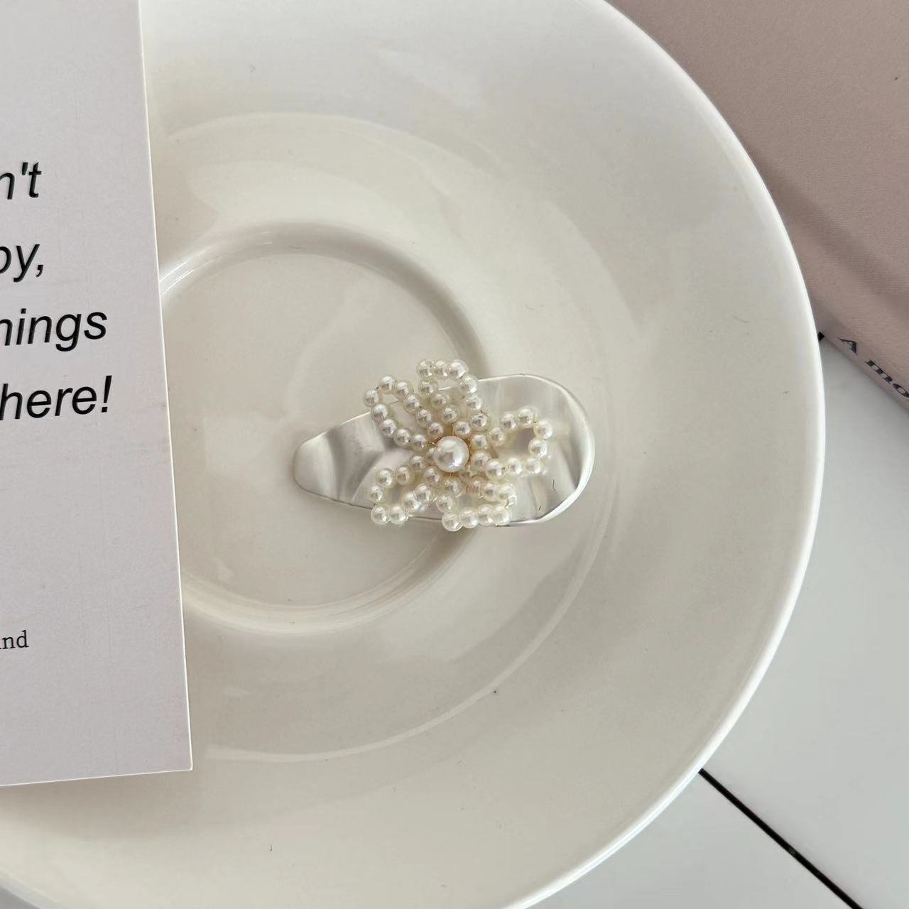 Ins風銀色真珠合金クリップヘアピン流行モデルのブロガー前髪クリップ