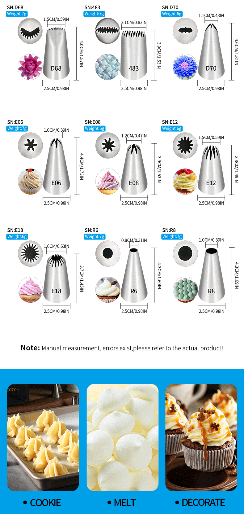 304 デコレーションノズルクリームケーキミディアムパフクッキー溶解豆ベーキングツールセット家庭用商業韓国スタイル