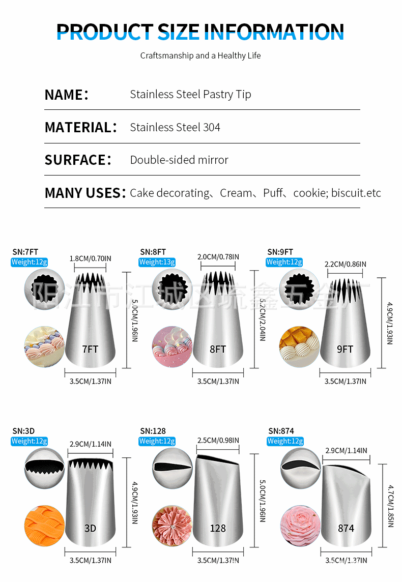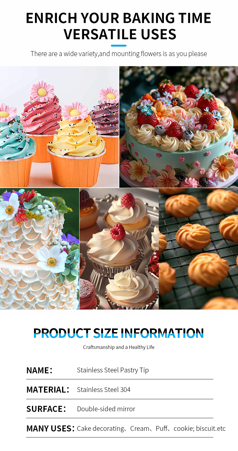 304シームレス表装ノズル25 30 35mm口径ハイエンドキッチンDIYツールケーキクッキー表装花