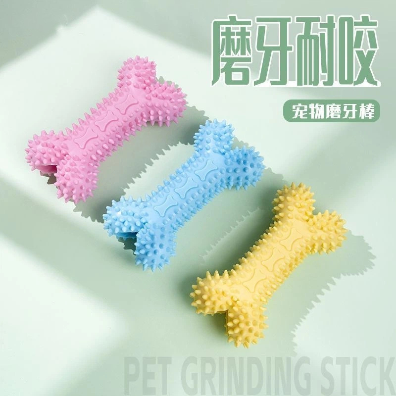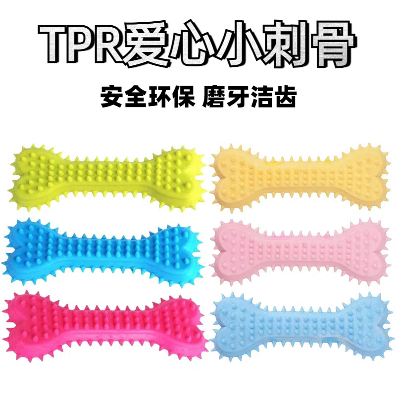 厂家批发宠物狗玩具耐咬洁齿磨牙棒 TPR空心带刺骨头泰迪金毛玩具