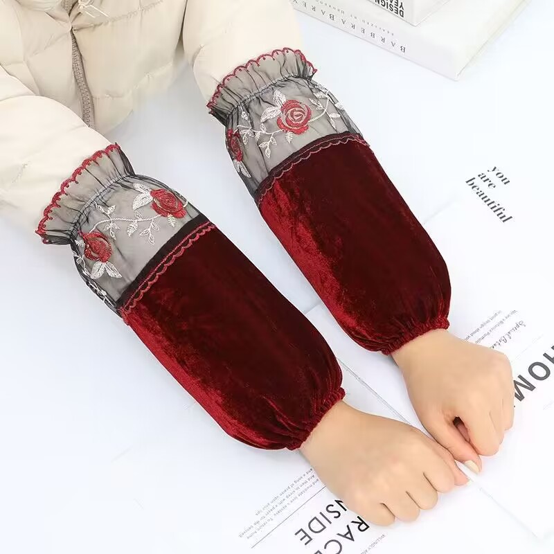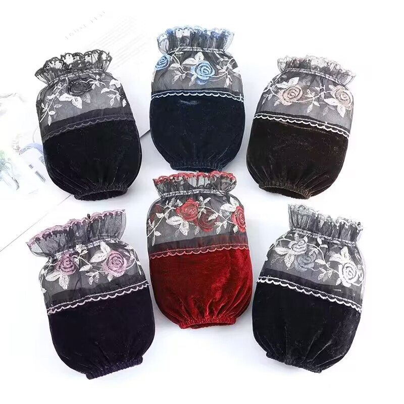 ベルベットの袖カバーの女性の長いタイプの女性の冬の仕事のレースカバーの袖の女性の台所の袖カバーの大人の袖の卸売り