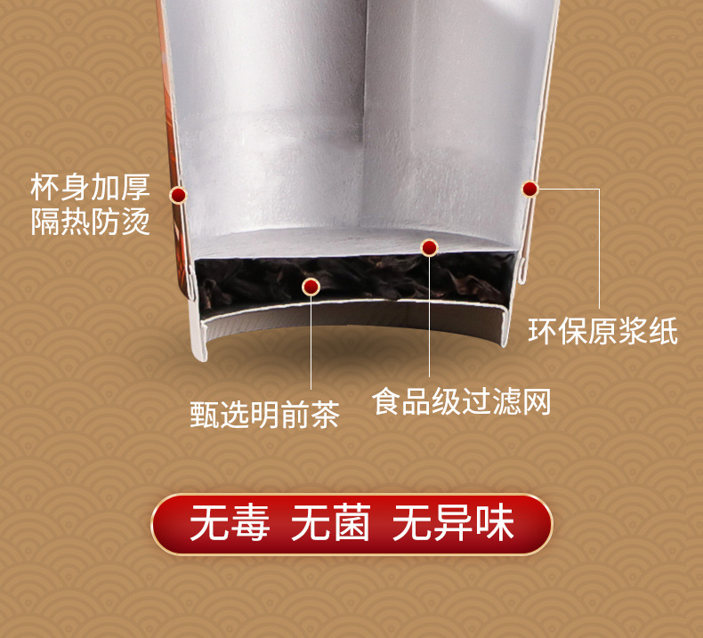 使い捨てのお茶のカップはお茶の隠れた専用の手提げ袋を持っています。