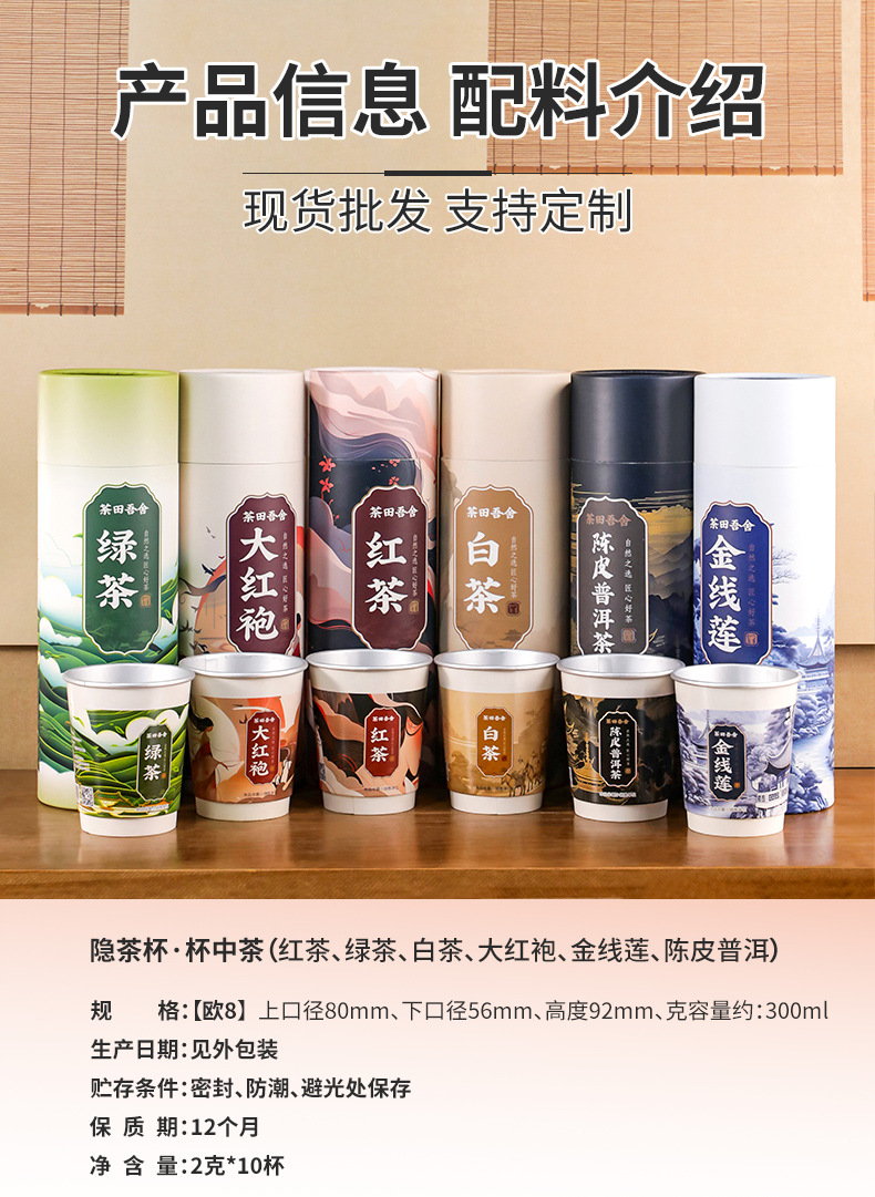 使い捨てティーカップ、お茶付き、軽量ギフト用紙コップ、お茶入り、一体型隠しティーカップ、ミルクティーカップ