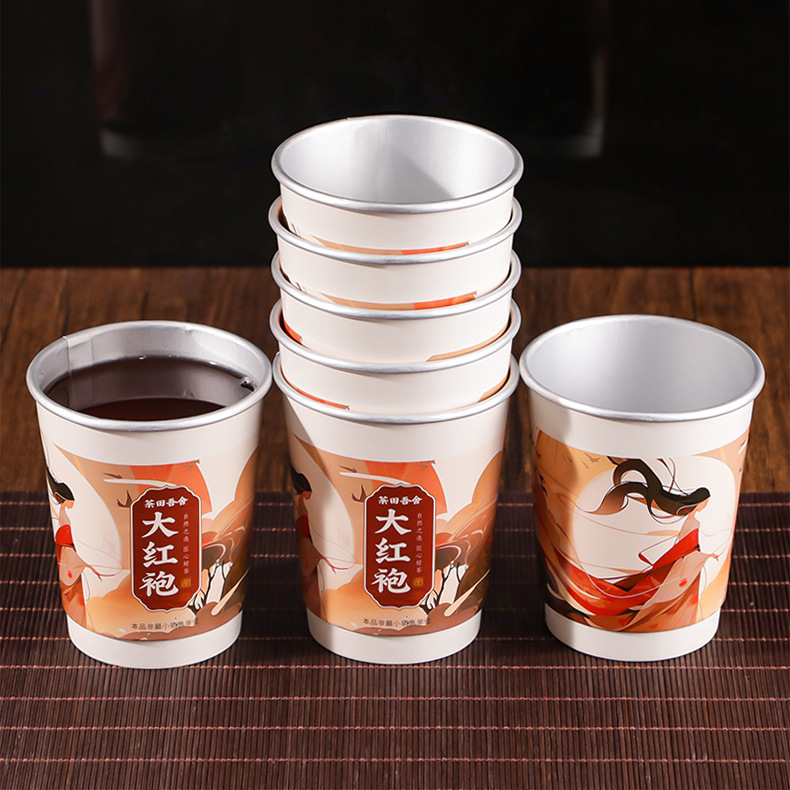 お茶付き使い捨て紙コップ使い捨てカップアルミ箔茶カップ二重カップ中茶カップ卸売り