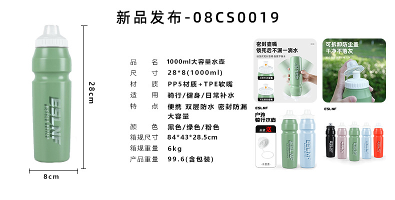 ESLNF自転車水筒1000ml大容量山地道路車運動フィットネス補水カップ騎行装備
