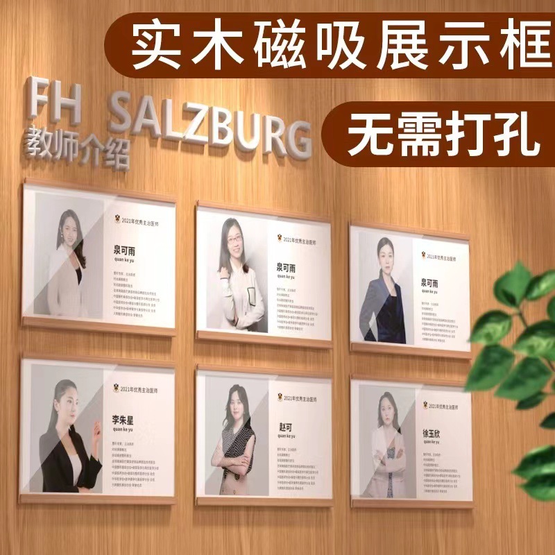 先生の紹介フォトフレームのマグネットポスターのコーチの展示壁は穴を開けないで教師の風采を展示します。