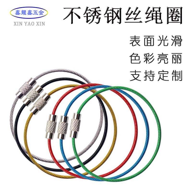 ステンレスワイヤーのキーホルダーは15cmのカラーゴムのワイヤーロープを掛けてペンキのキャンディー色の開口ワイヤーリングを焼きます。