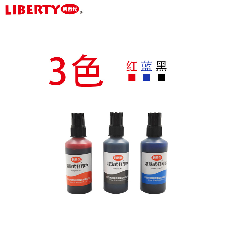 利百代ゴム瓶印台印刷水補充液赤青黒三色ボール式印刷水/W009-55g