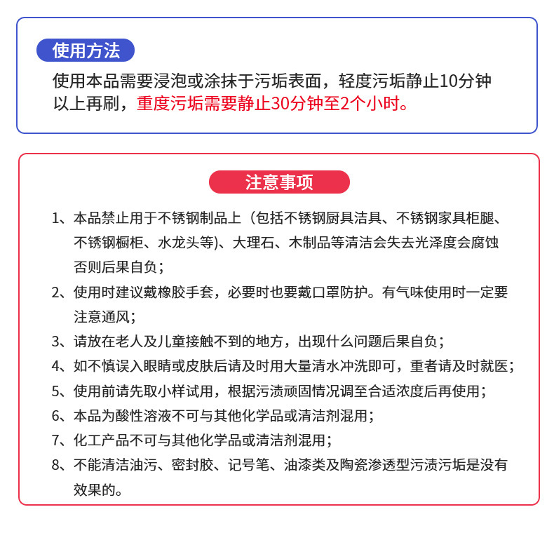 瓷净高浓度草酸清洁剂除垢剂马桶洁厕灵强力下水道除垢瓷砖清洁剂