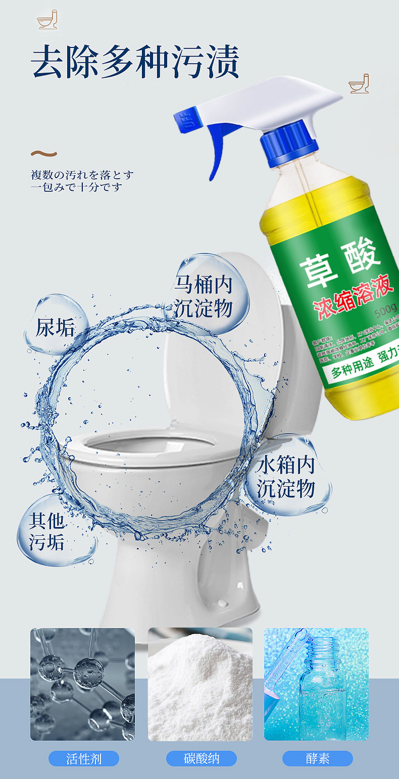 草酸清洁剂高浓度溶液瓷砖厕所除垢剂去黄工业除尿碱强力溶解剂