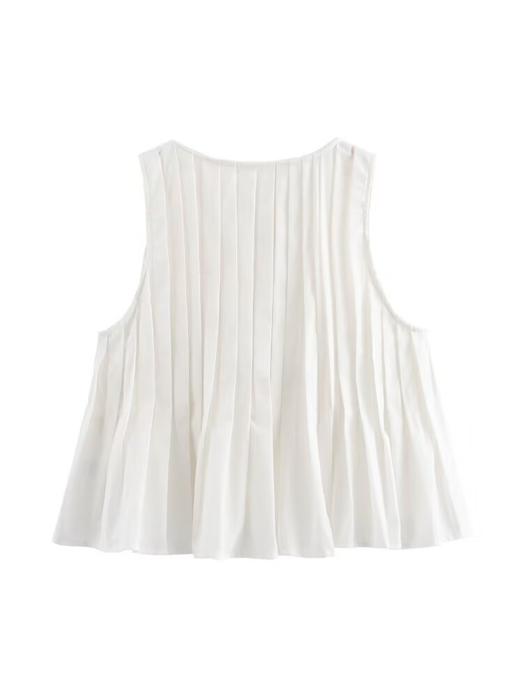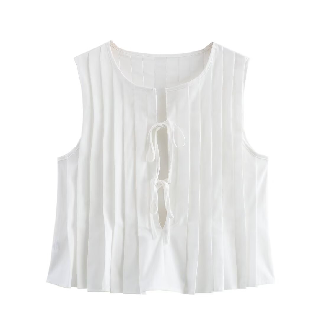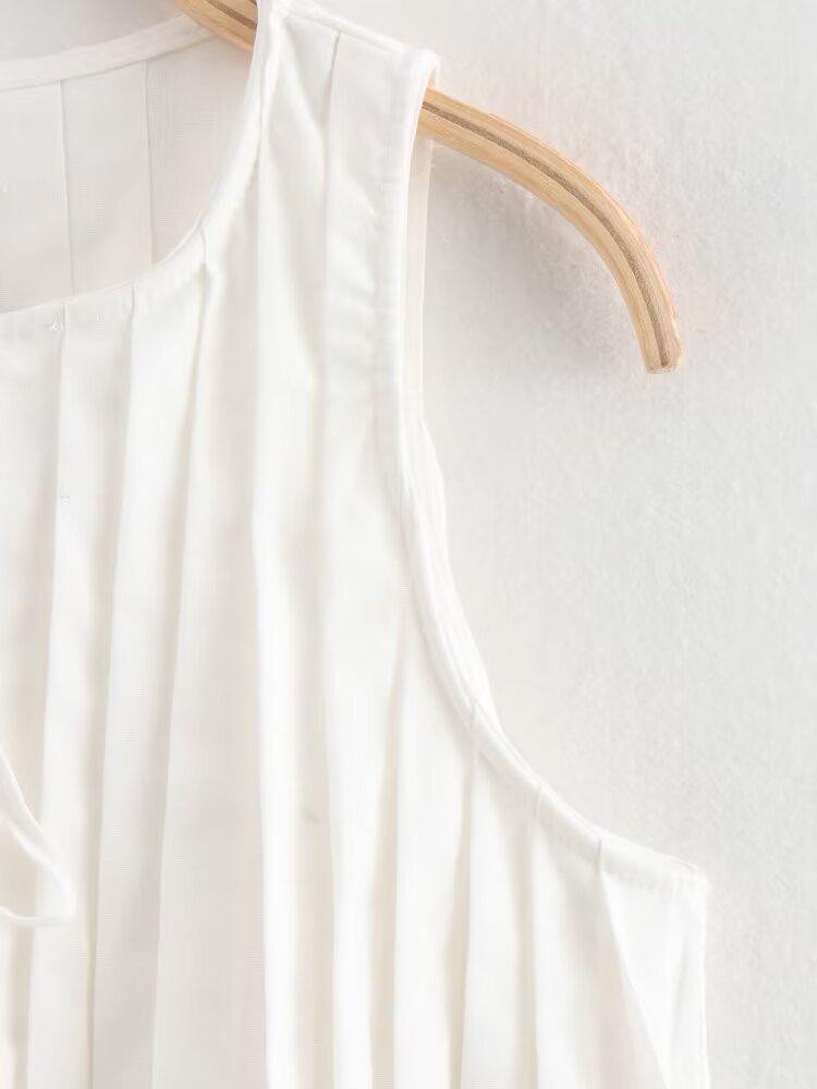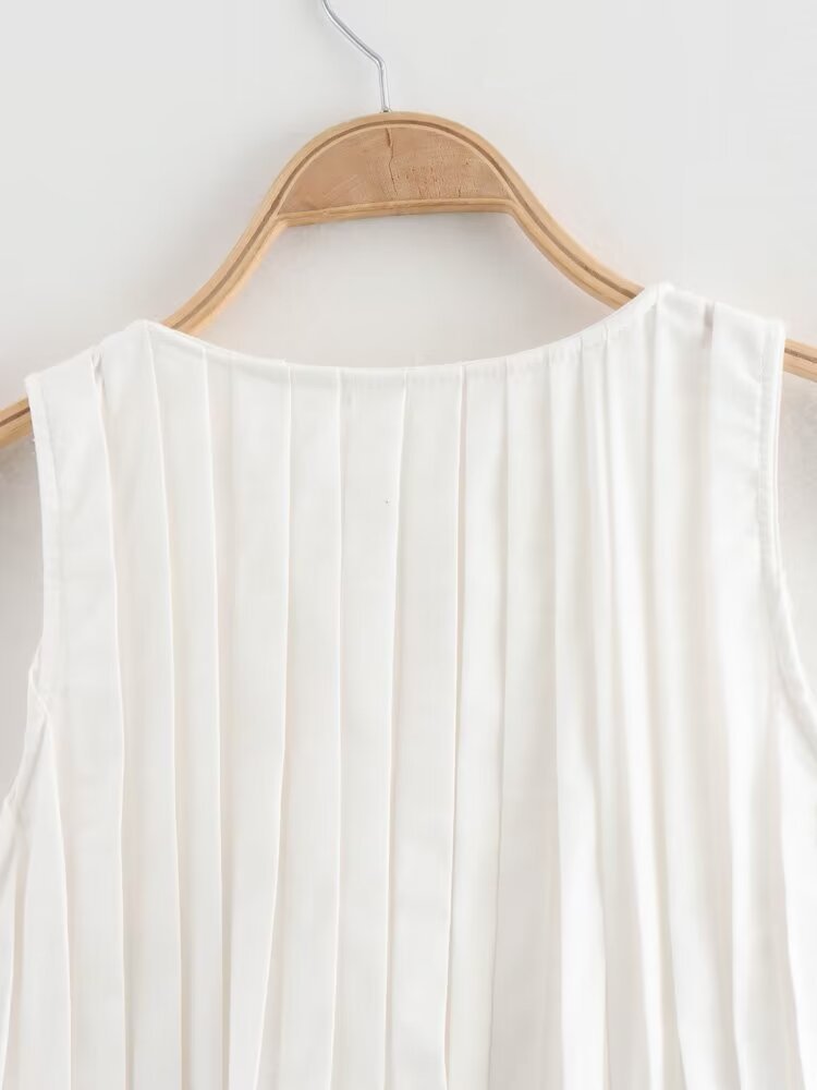欧米の国境を越えた婦人服の卸売りの女性の百タックの袖なしのひものシャツの高い腰の半身のスカートのカジュアルなスーツ