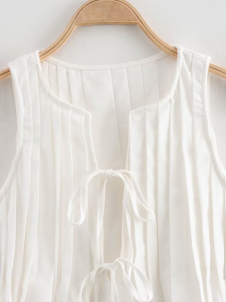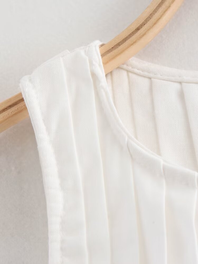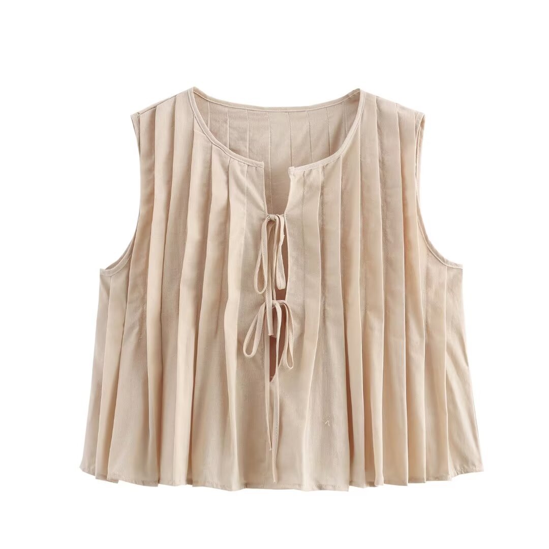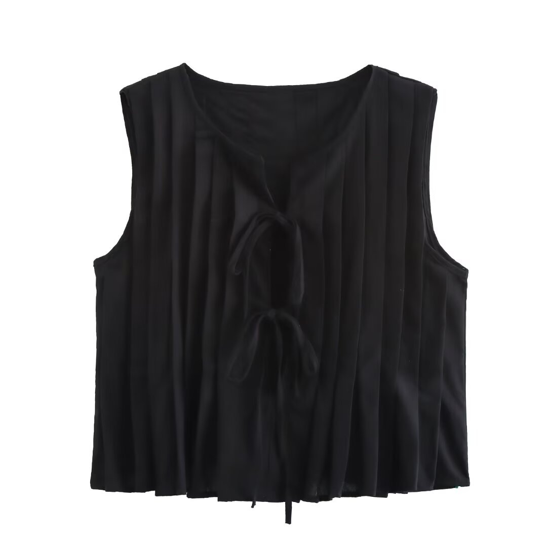 欧米の国境を越えた婦人服の卸売りの女性の百タックの袖なしのひものシャツの高い腰の半身のスカートのカジュアルなスーツ